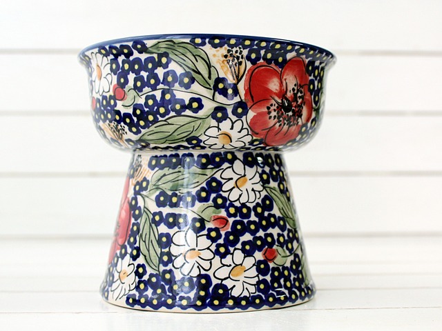 お洒落な相棒に! 最高級柄フラワーラインシリーズの 豪華絢爛お花の絵付けのペットボウル♪ 普通に立ったまま無理せずに自然な姿勢でお食事ができる ペットに優しいデザインです。 中型小型犬猫さん用です。 製造元 : マヌファクトゥラ社 原産地 : ポーランド サイズ:直径13cm×高さ12cm 容量 300ml
