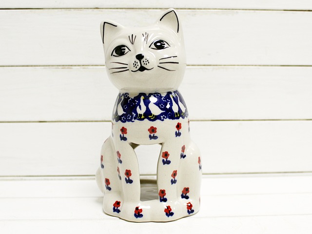 マヌファクトゥラ社の人気のマスコット猫! パッチリおめ目が可愛い。アロマスタンドです。 使い方は、頭の上の丸い穴からアロマオイルを入れて 背中の下からキャンドルを入れます。 前 足の間に窓が開いているので、光が漏れてとっても綺麗です。 首の部分で仕切られておりますので アロマオイルもたっぷり60ml入ります。 製造元 : マヌファクトゥラ社 原産地 : ポーランド サイズ:高さ15.5cm×幅8.3cm×奥行き8cm オイル容量60ml