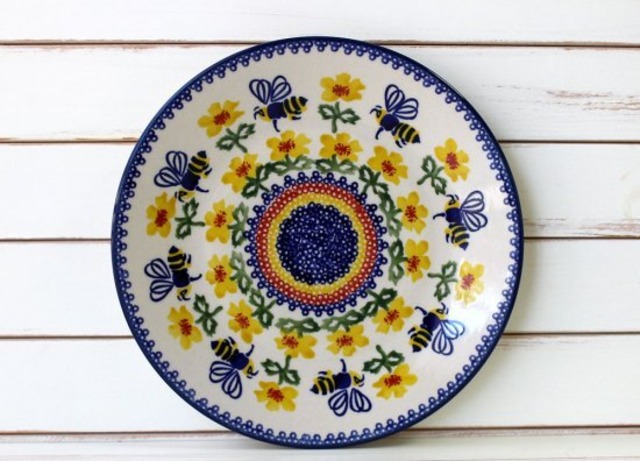 真っ赤なお花とミツバチさんたち! まさに贈り物にピッタリの美しく華やかな作品です。 和食にも中華にも使いやすい柄は いつもの食卓を賑やかに演出しますね。 遊び心のあるポーリッシュポタリー(ポーランド食器)を ご自宅で楽しみたい方に是非おすすめします。 製造元 : マヌファクトゥラ社 原産地 : ポーランド サイズ:直径 22cm×深さ2.8cm