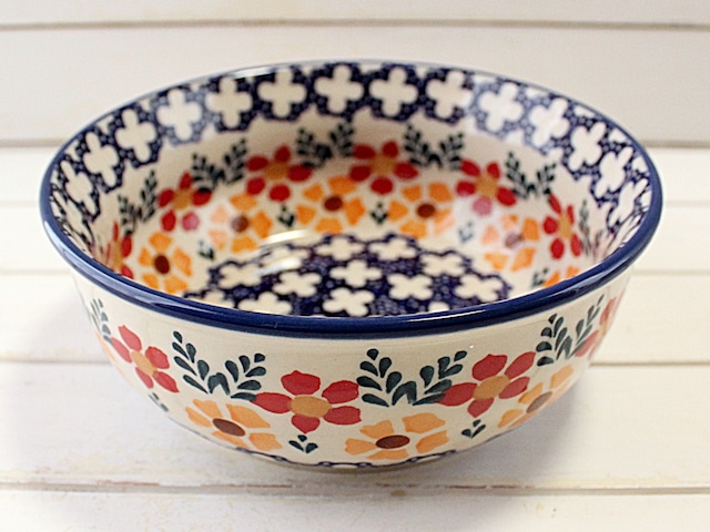 心がホッコリと優しくなれる♪ 赤とオレンジの菫のお花の絵付けです。 深さたっぷり6.5cm直径は、16.5cmです。 多めに作ったおかずにも余裕の深さ大きさです。 製造元 : マヌファクトゥラ社 原産地 : ポーランド サイズ: 高さ-6.5cm, 直径-16.5cm