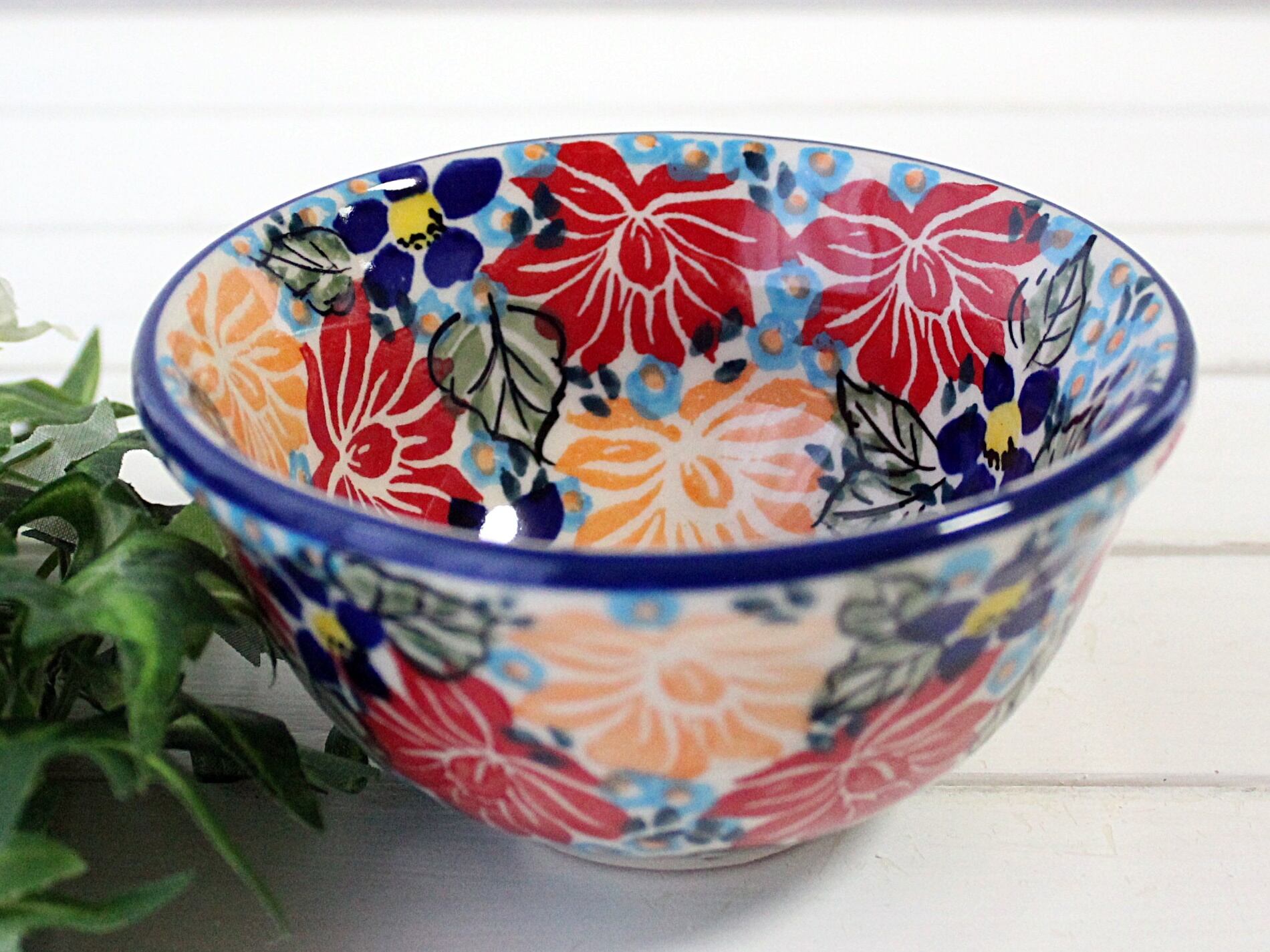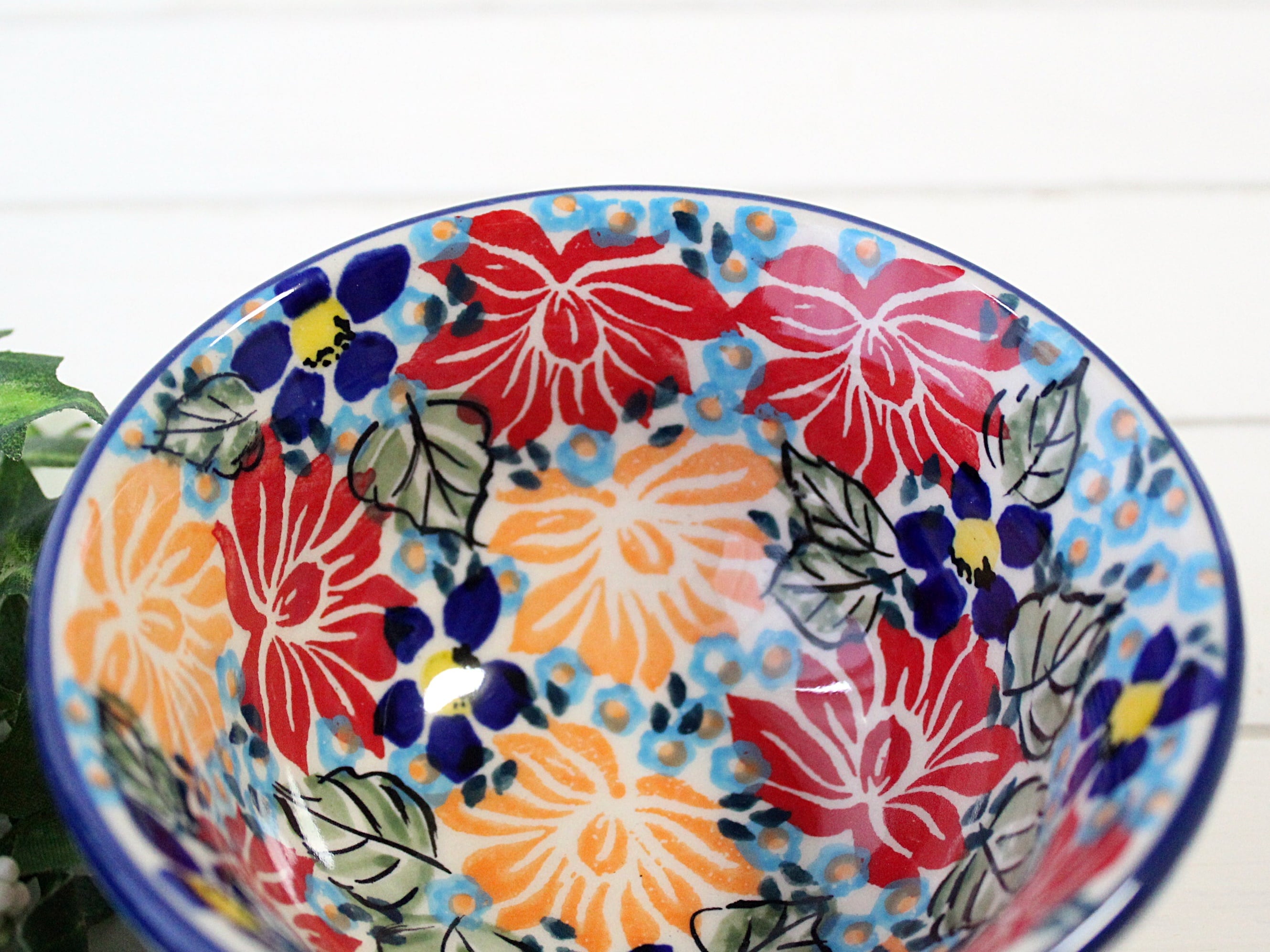 トロピカルな愛らしいお花の絵付けのお茶碗です。