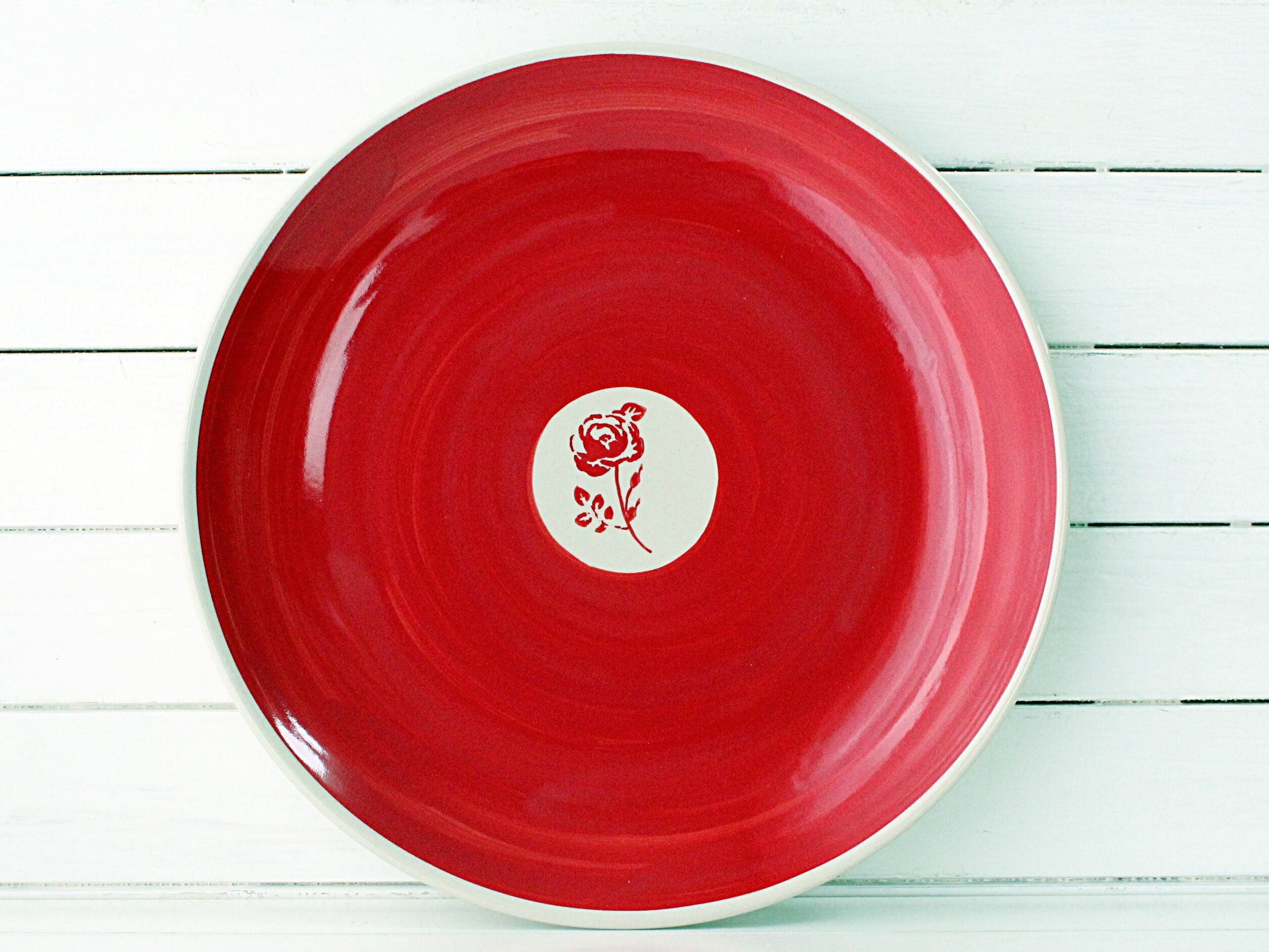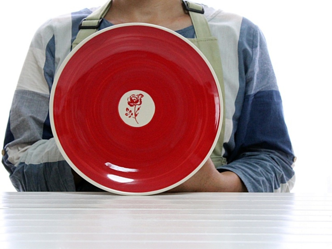 夕焼け色の赤!丸く白抜き・・・センターに薔薇♪