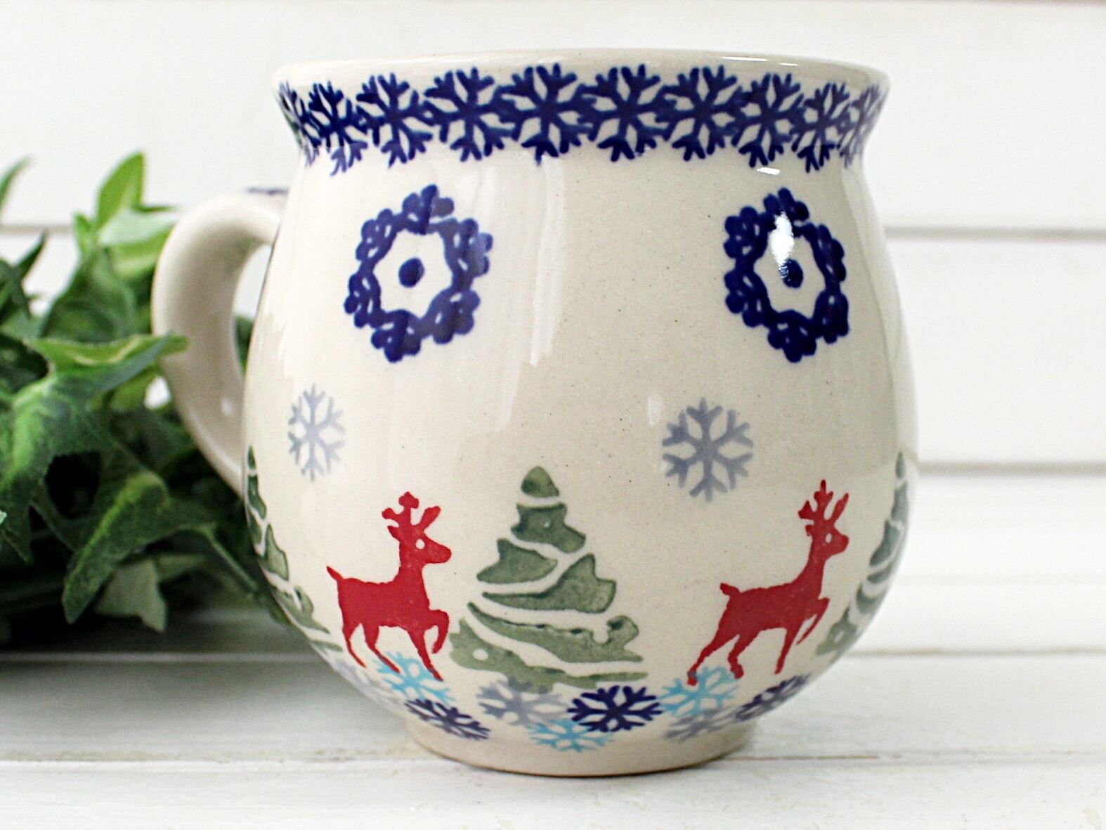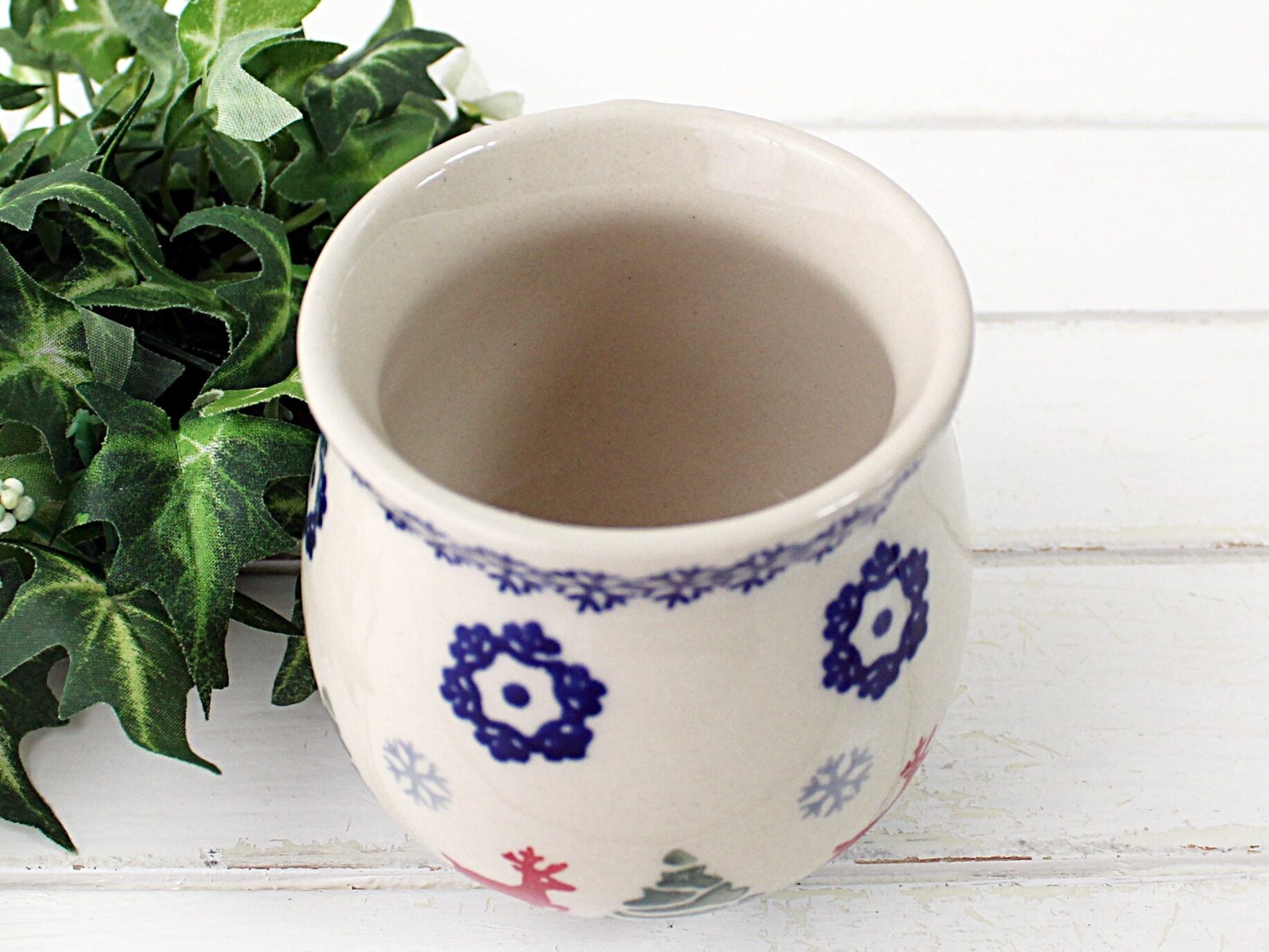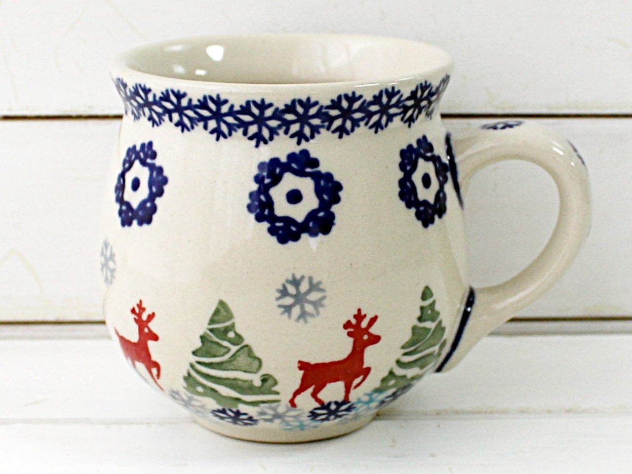 雪の結晶とモミの木とトナカイさんの絵付けです。