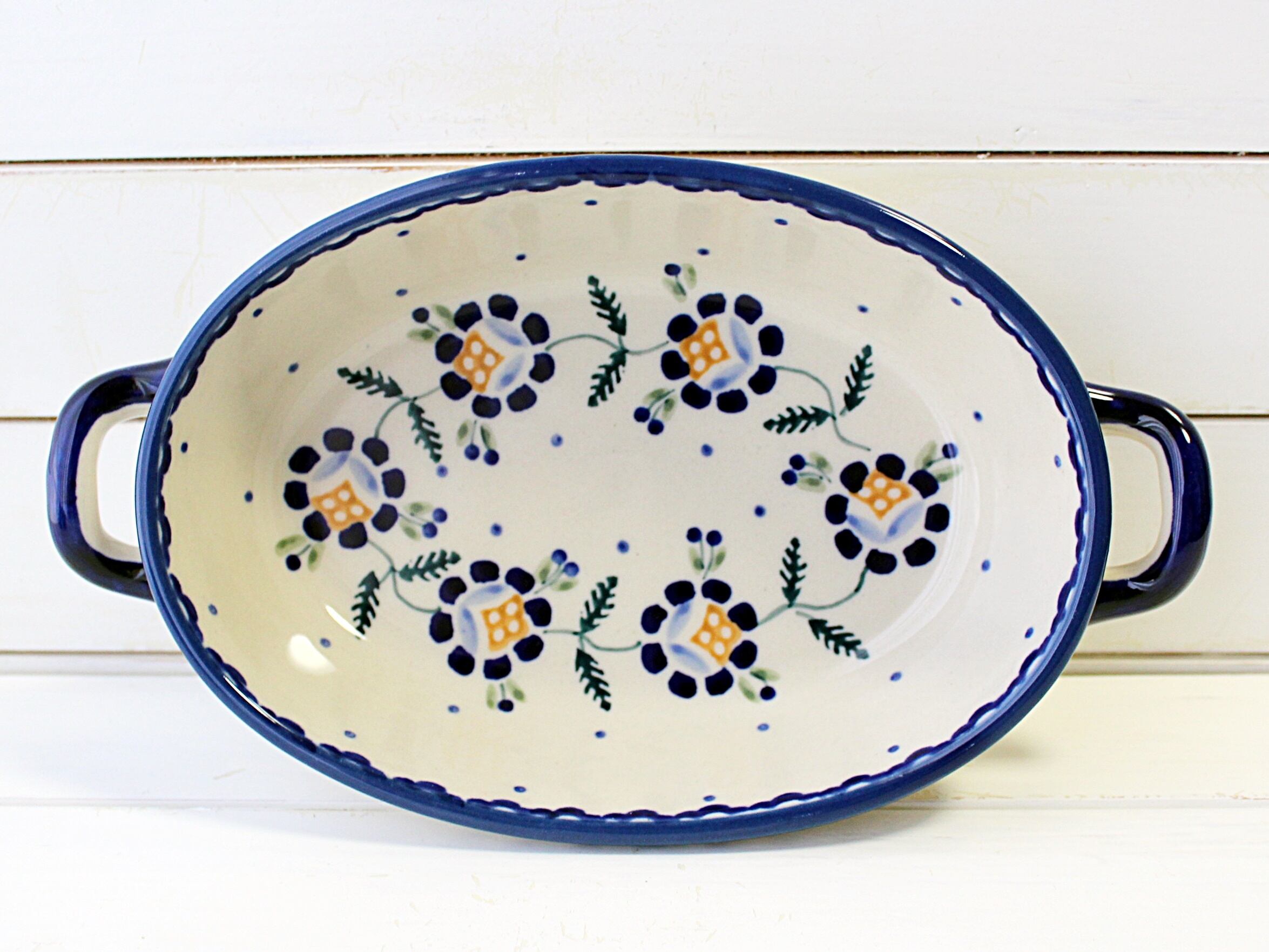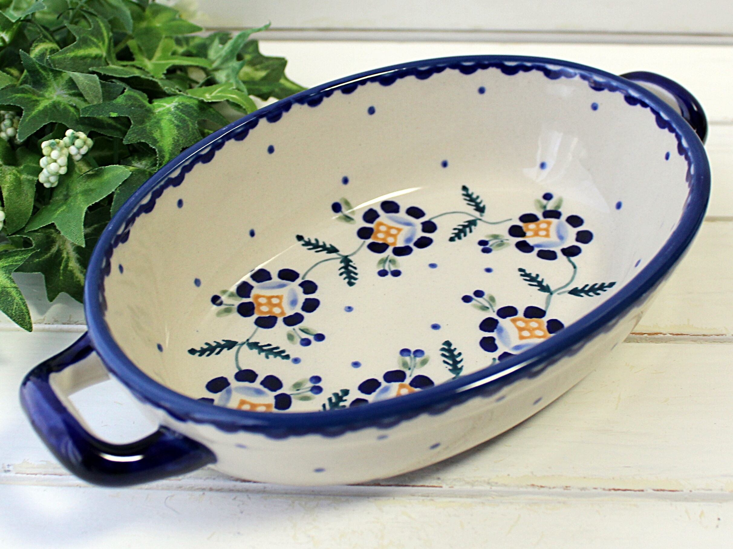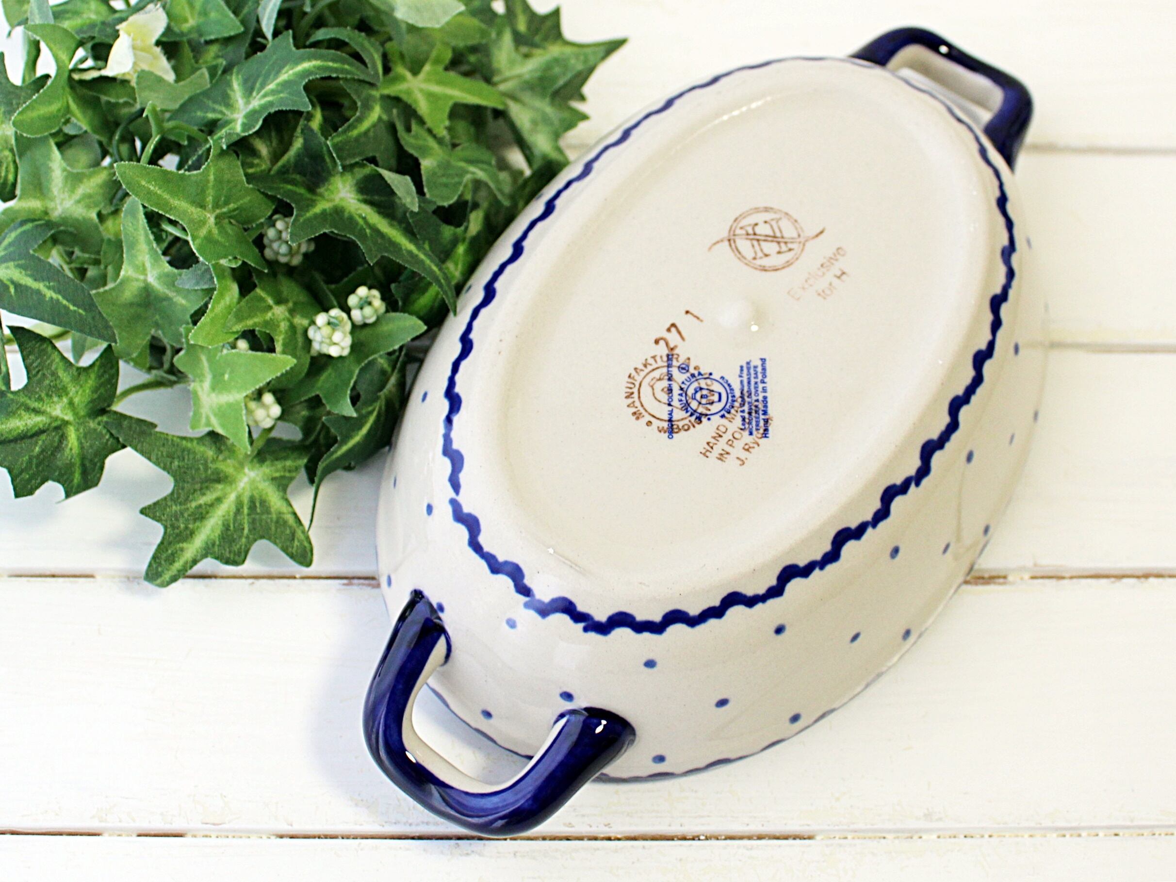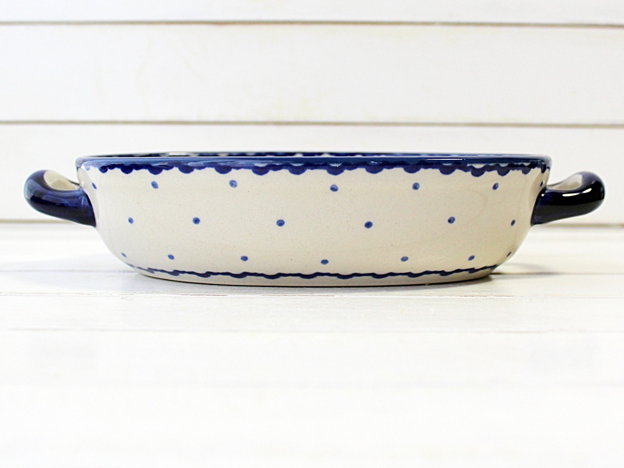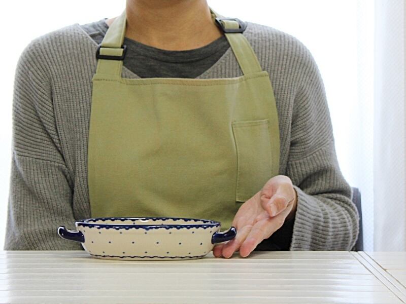 楕円形のフォルムには、しっかりとした持ち手付きです。