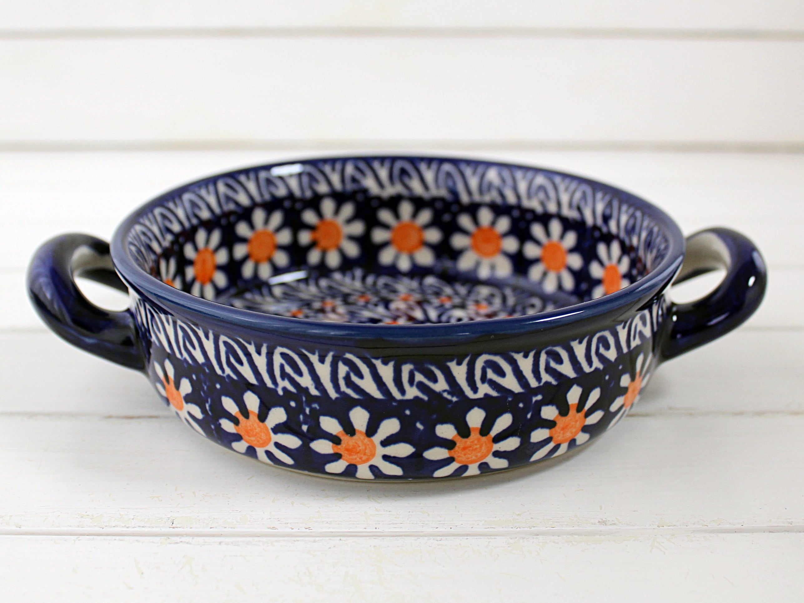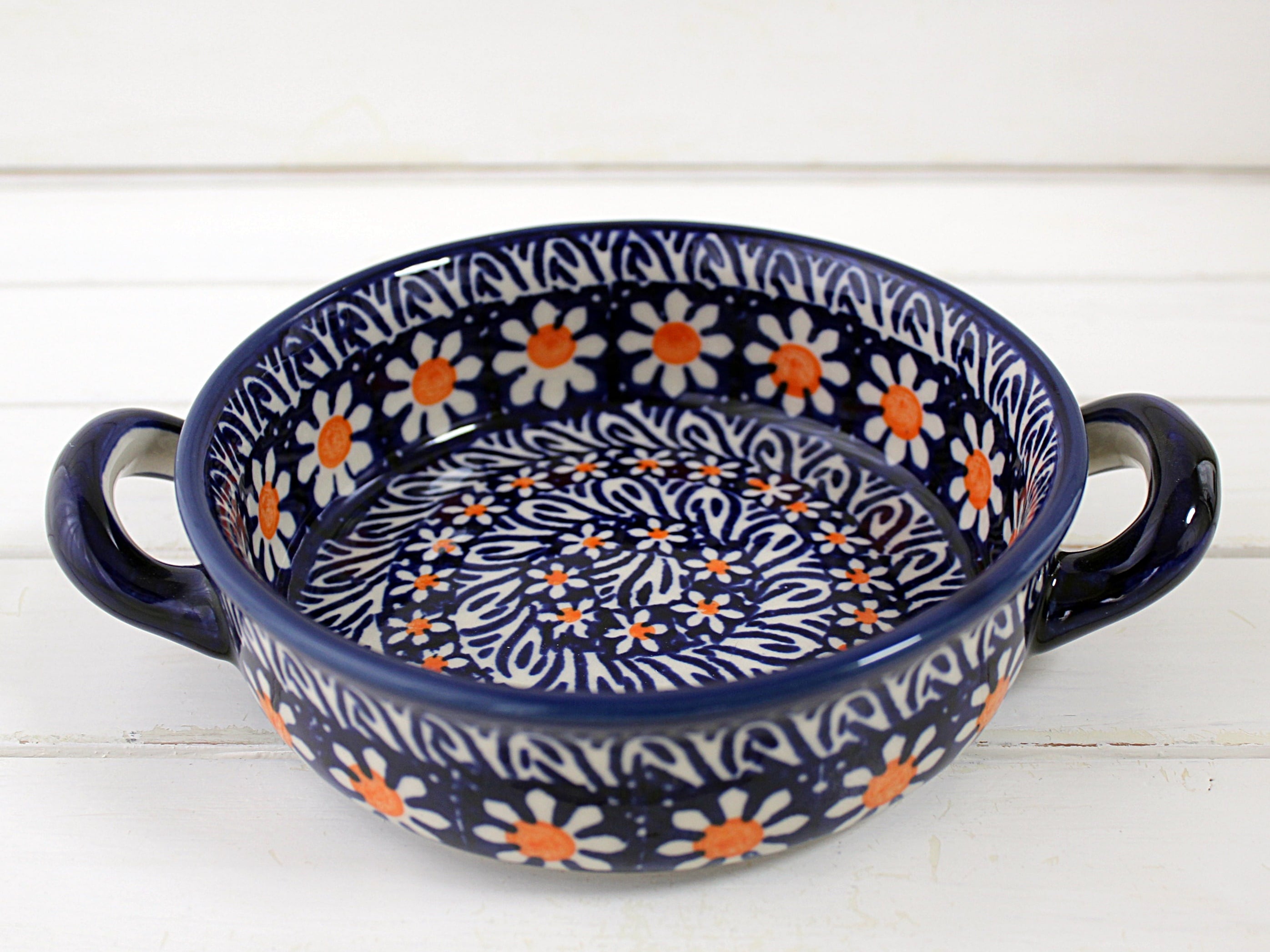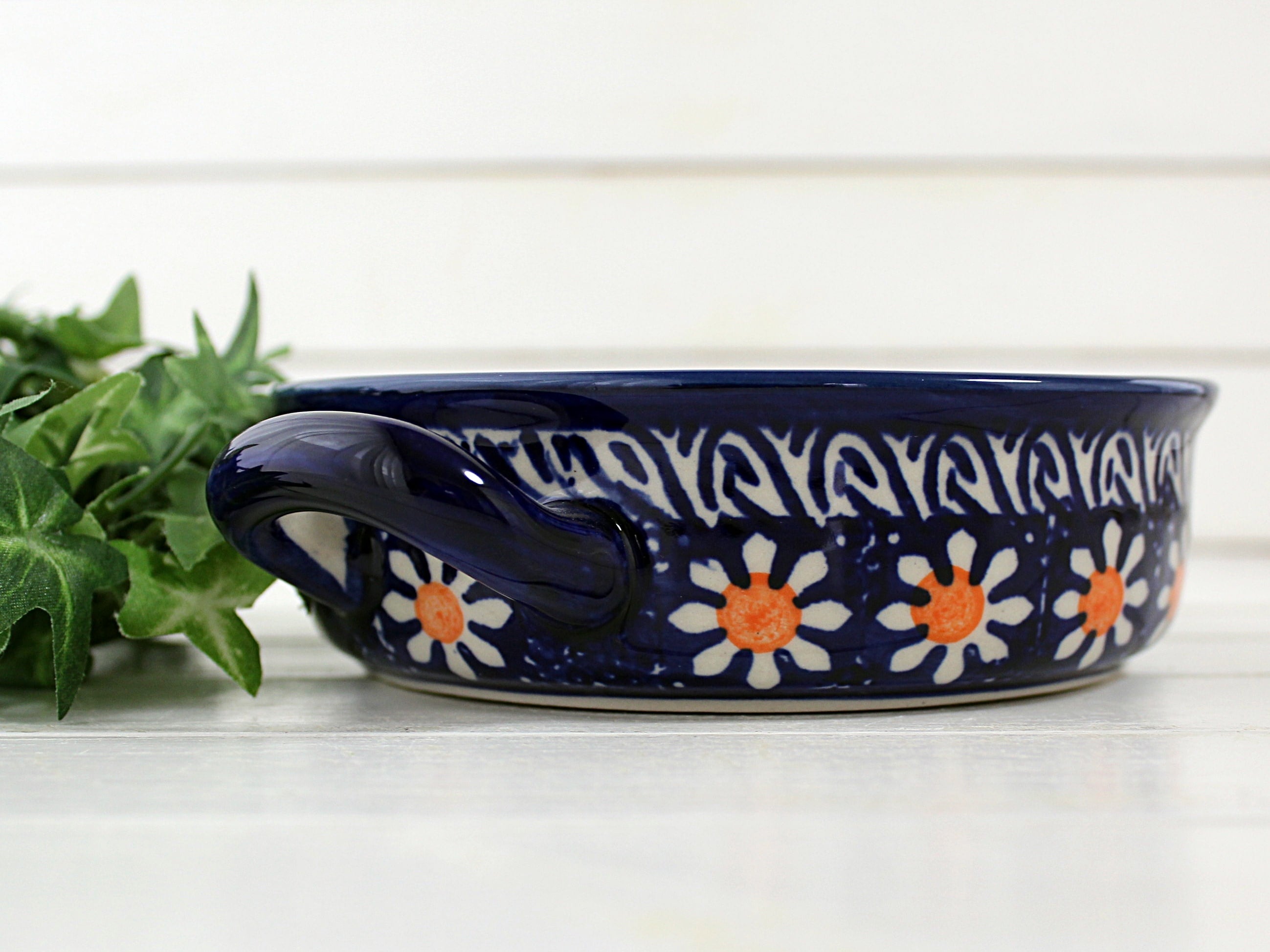 ポーリッシュブルーにマーガレットのお花の絵付けです。