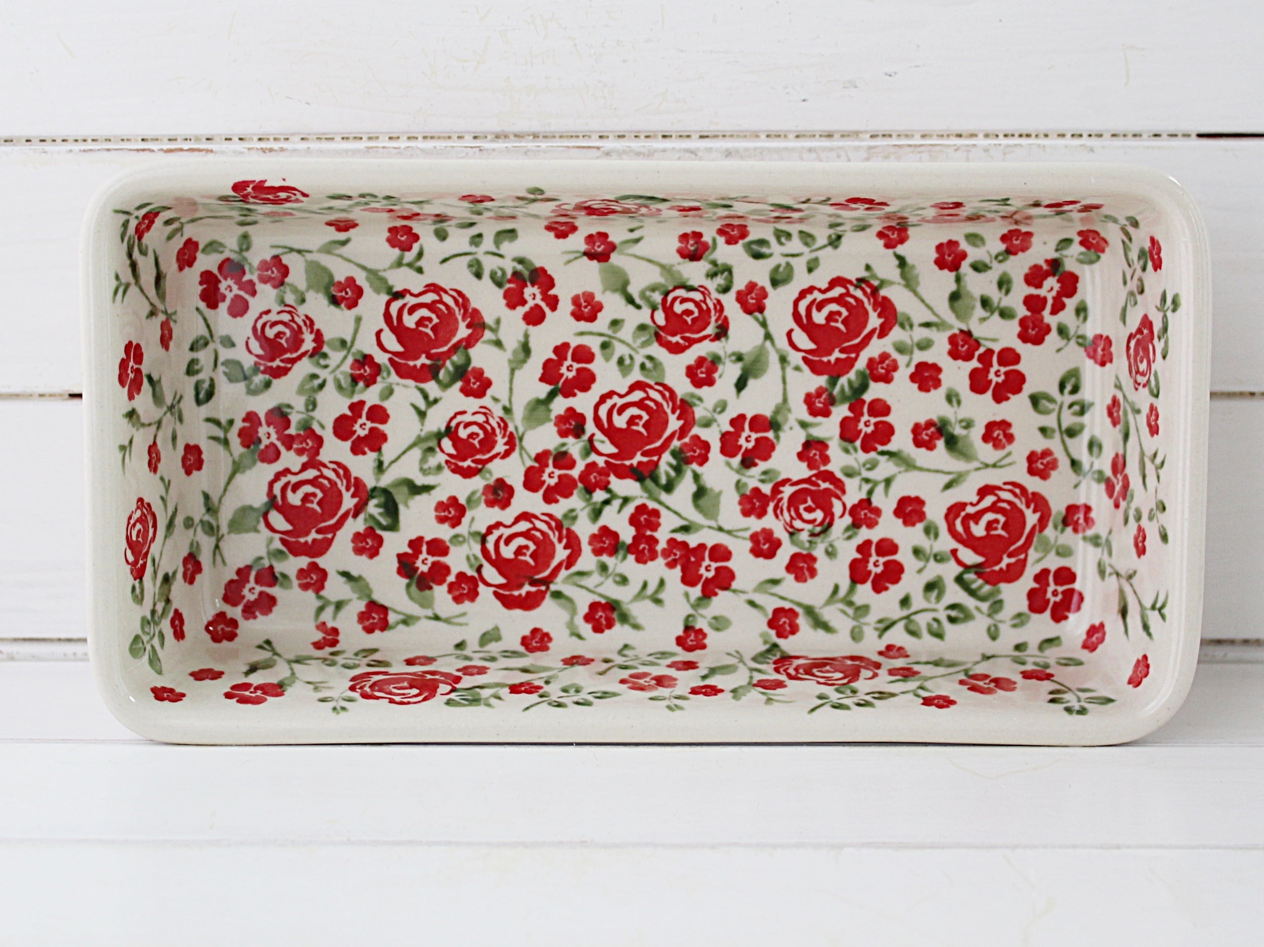 人気の柔らかな黄緑の葉に深紅のお花と薔薇の絵付け。