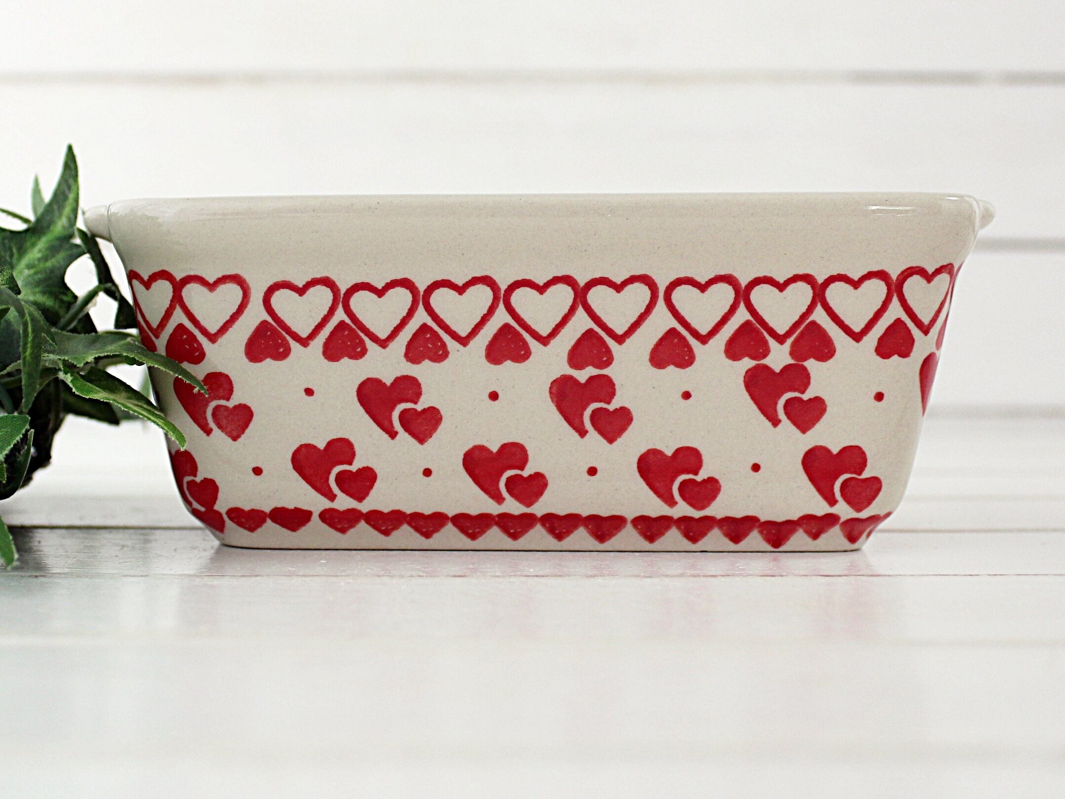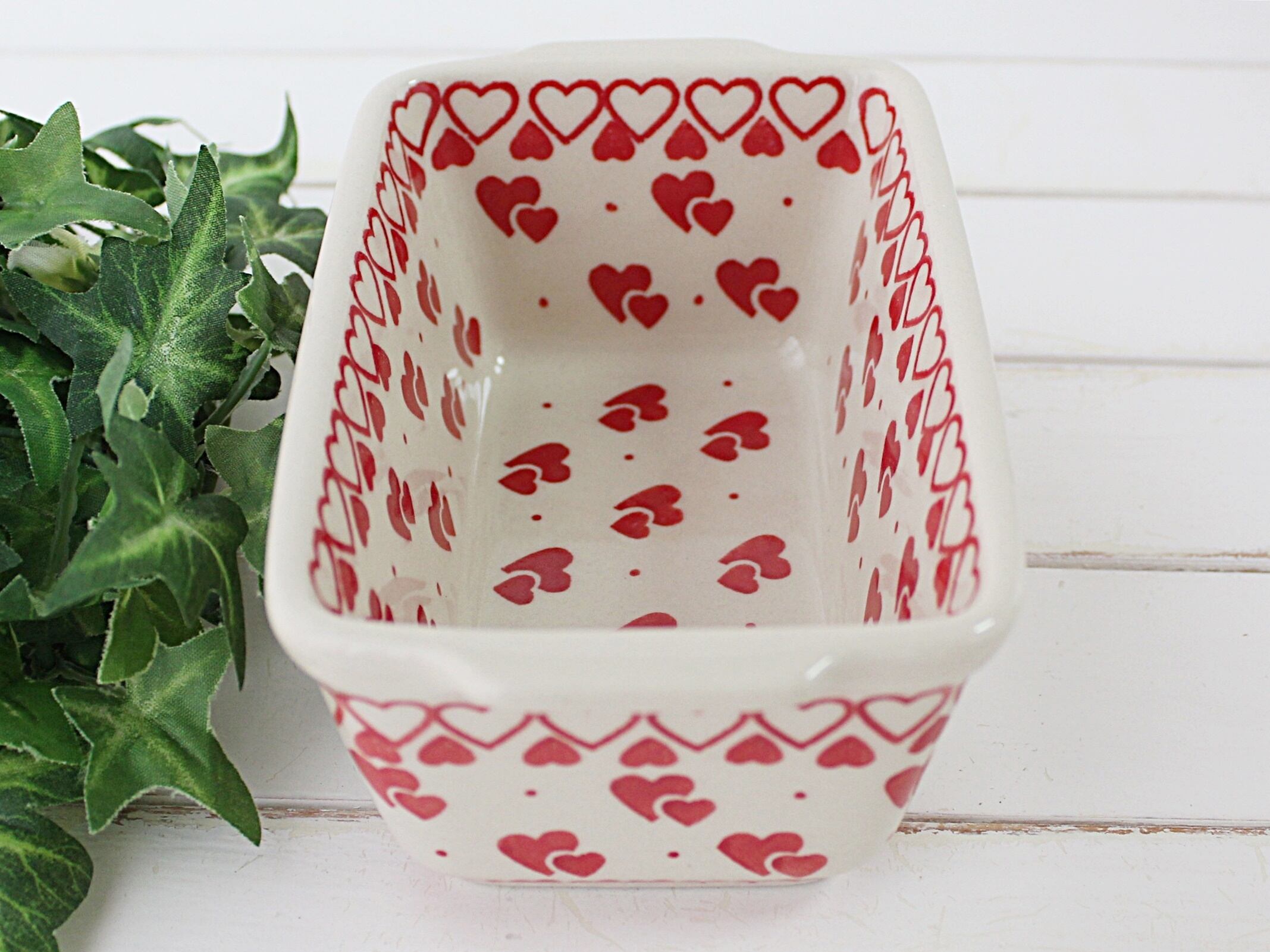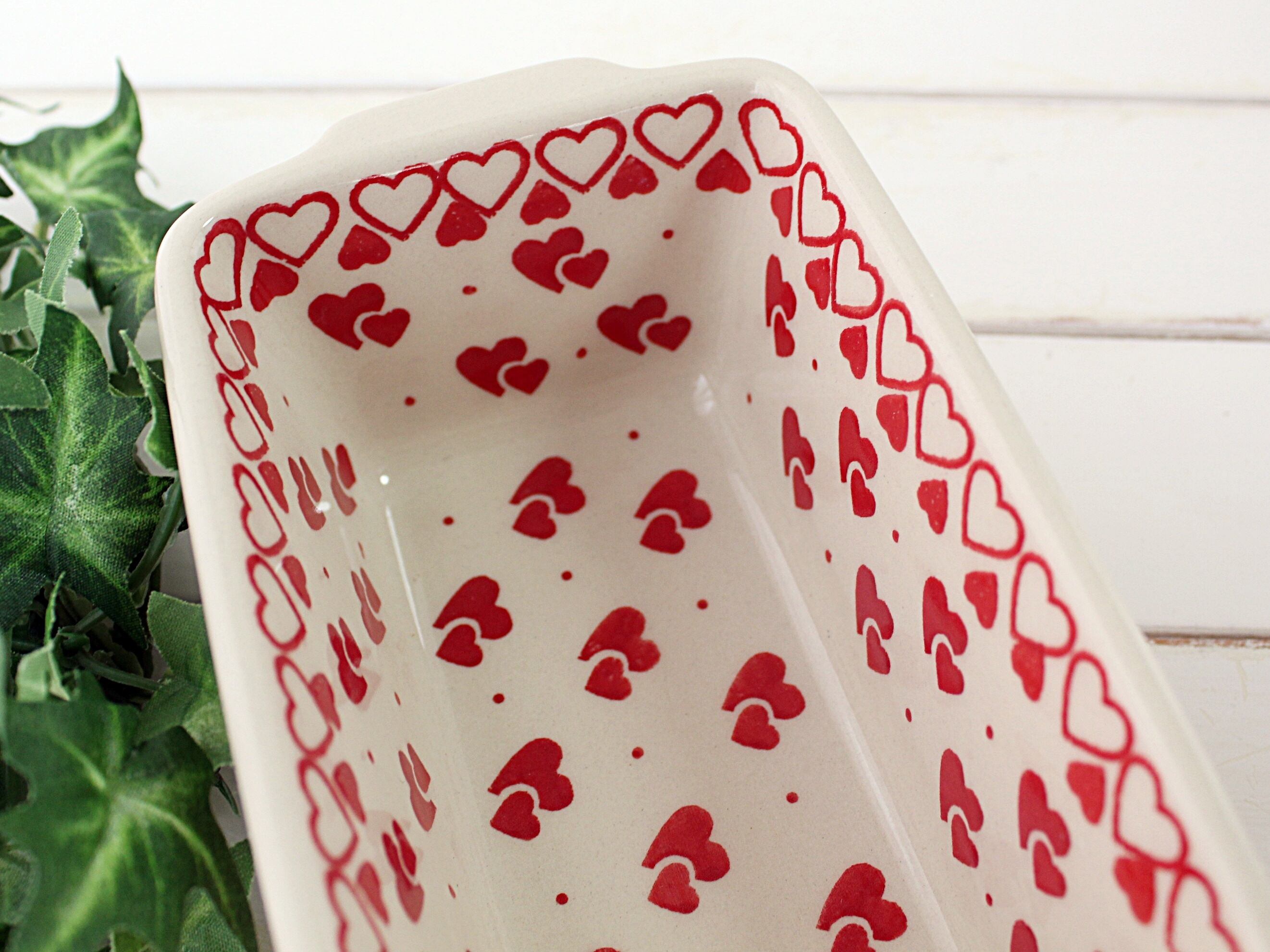 大小のハート模様と、ピンドットの赤丸の絵付けです。