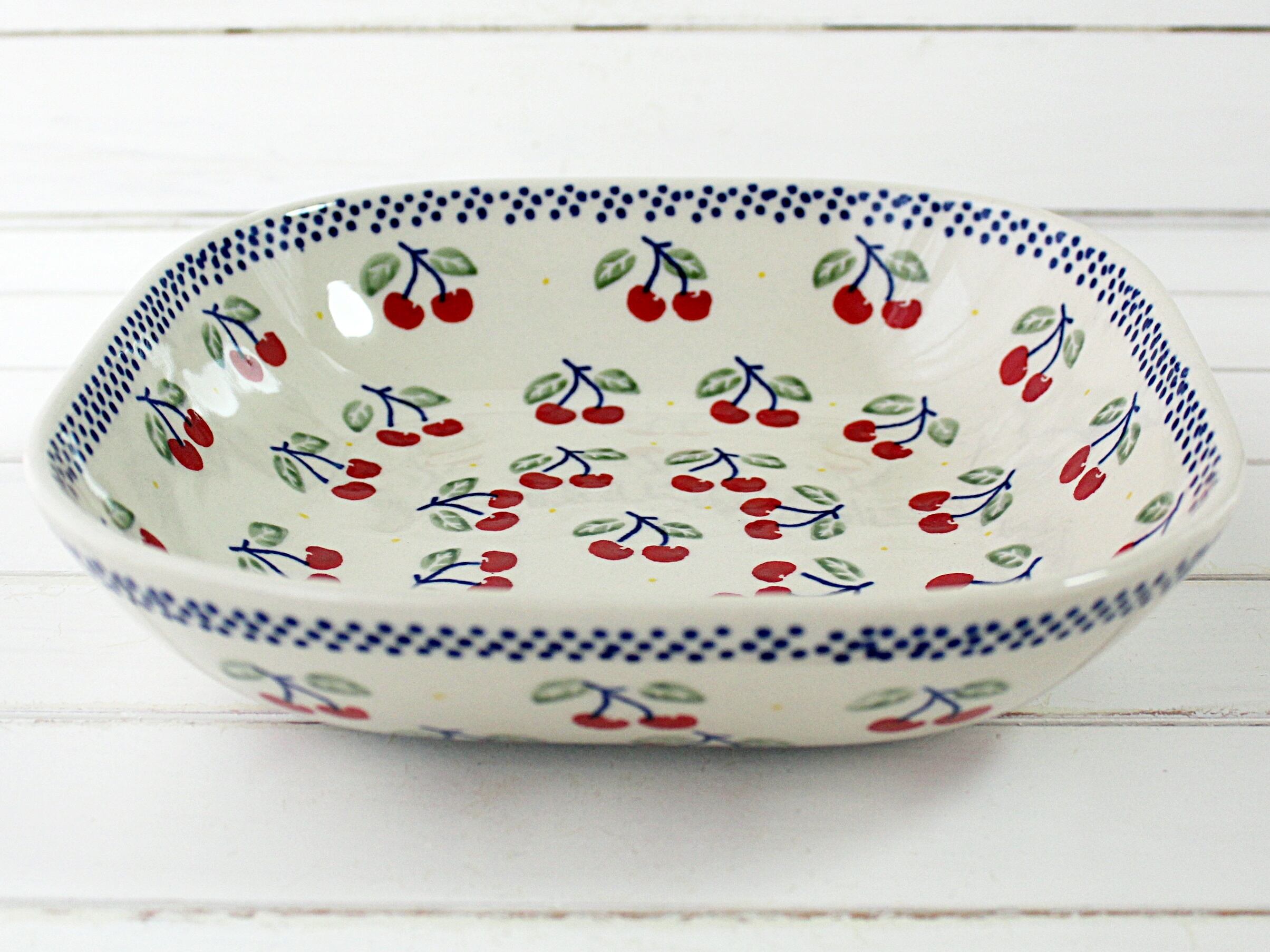 青の丸の縁取りと、ツインさくらんぼにピンドットの黄色が