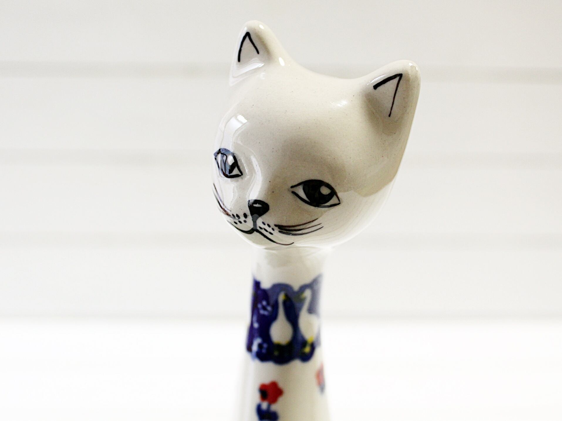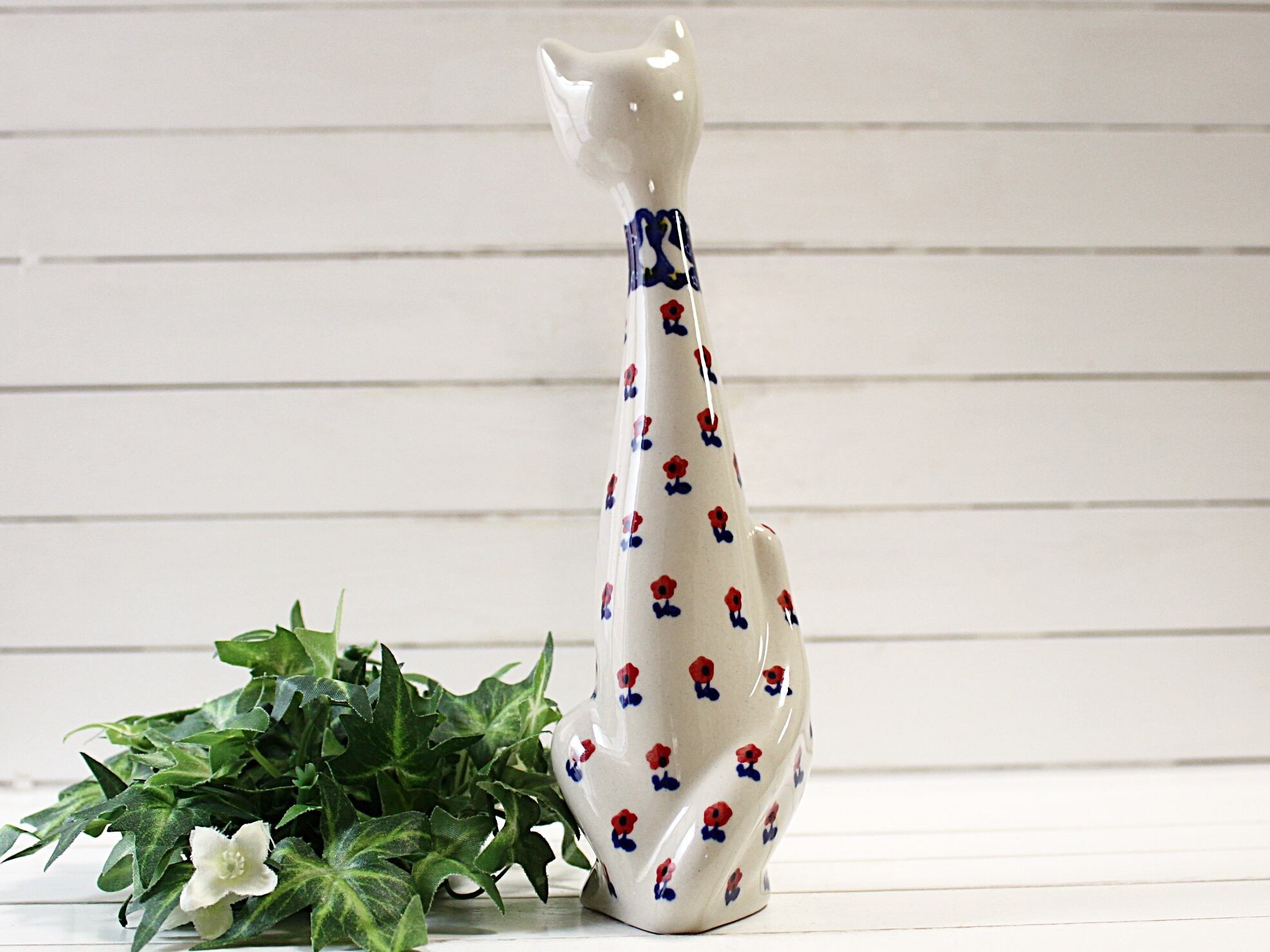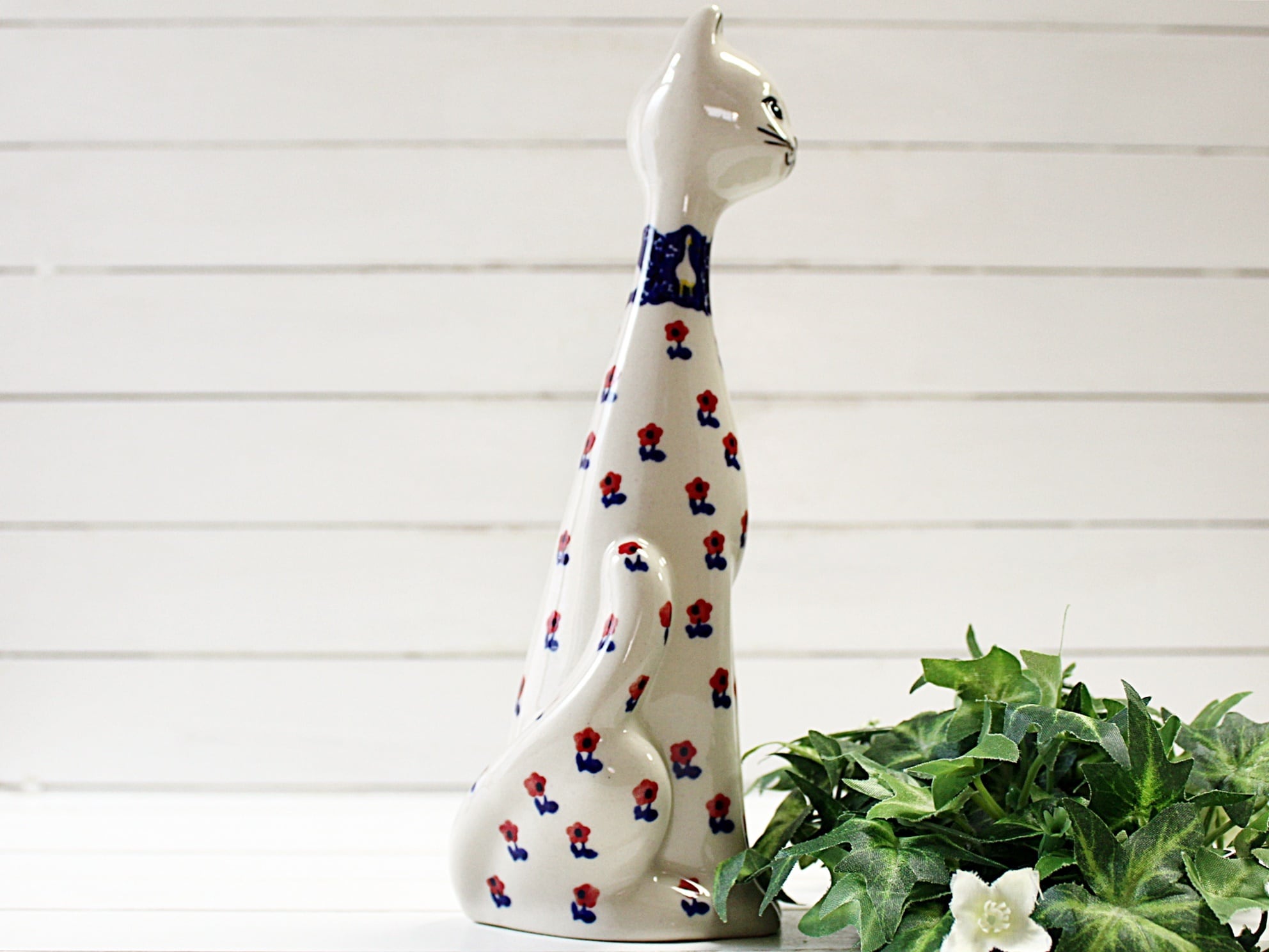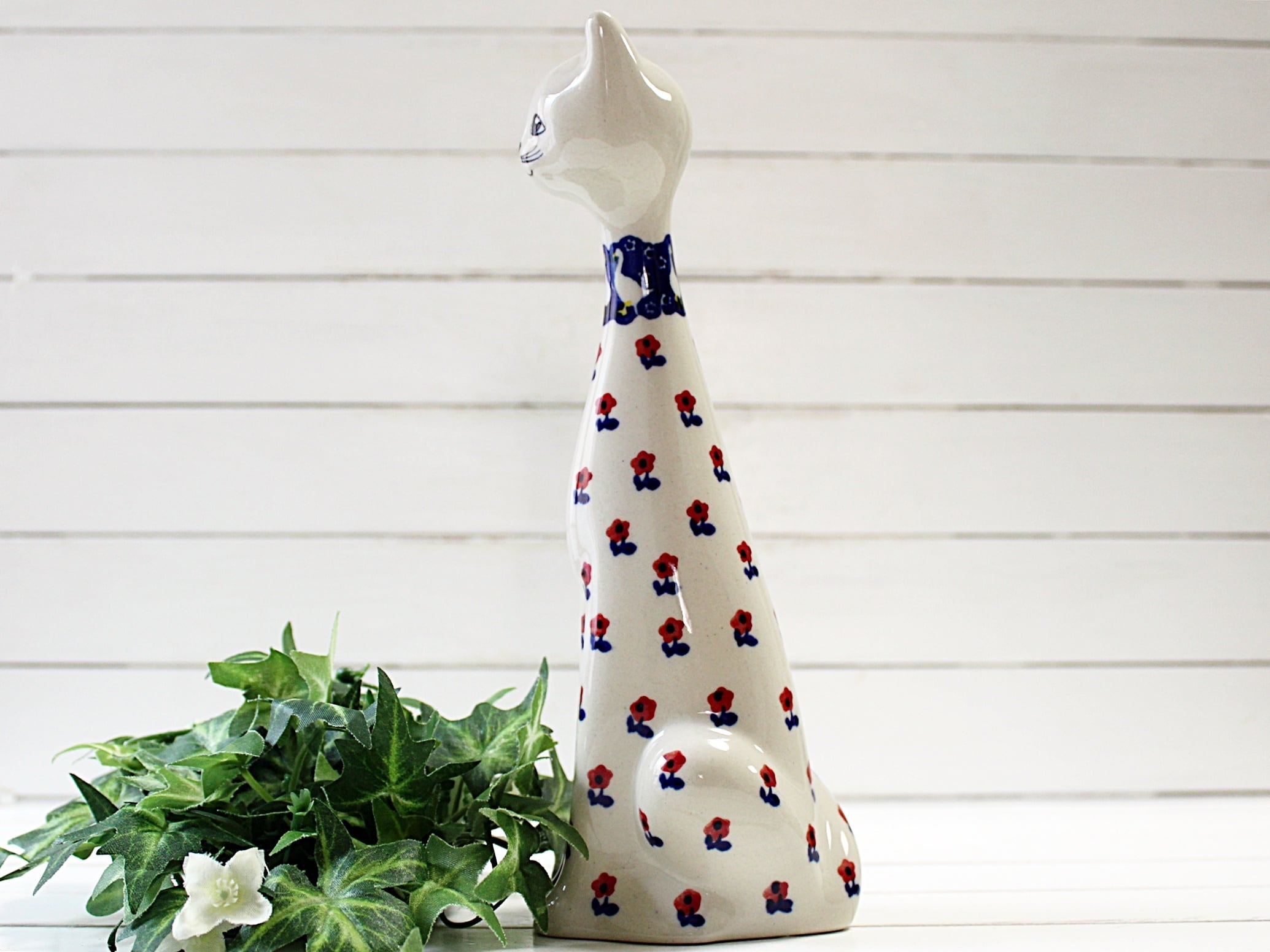 とっても可愛いペアーのアヒルと、赤いお花模様の猫ちゃんの置物です。
