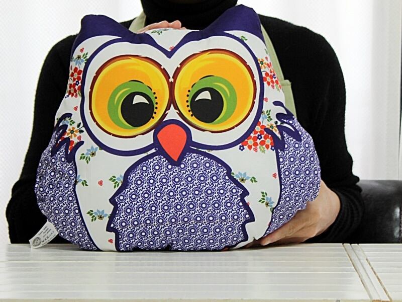 ソファーに、また、お車の腰当に♪可愛いフクロウのふかふかクッションです。