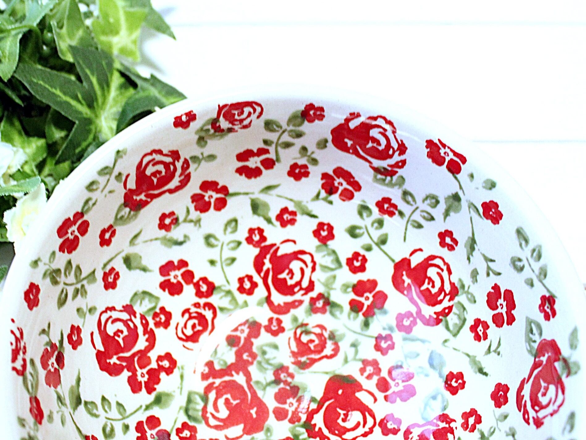 美しい薔薇と赤いお花の素敵な絵柄です。