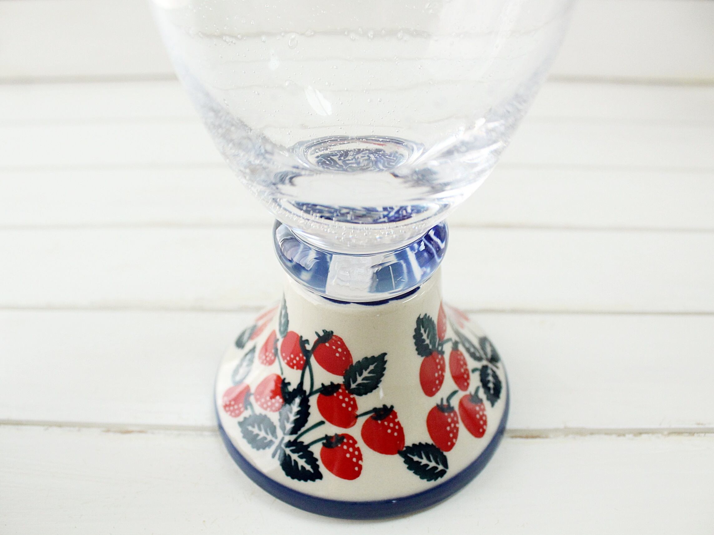台座の陶器には、真っ赤な、ストロベリーの絵付けです。