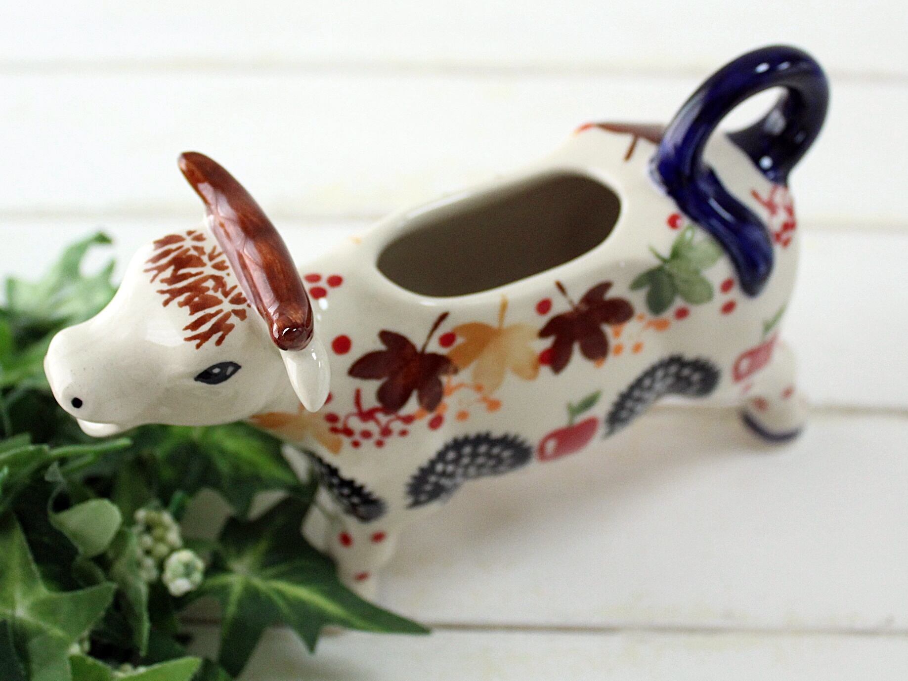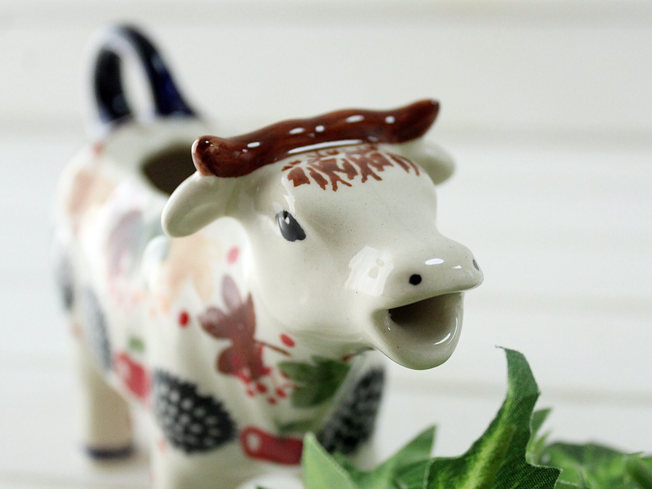 ブラウンのツノに前髪がキュートな牛さんのミルクピッチャーです。