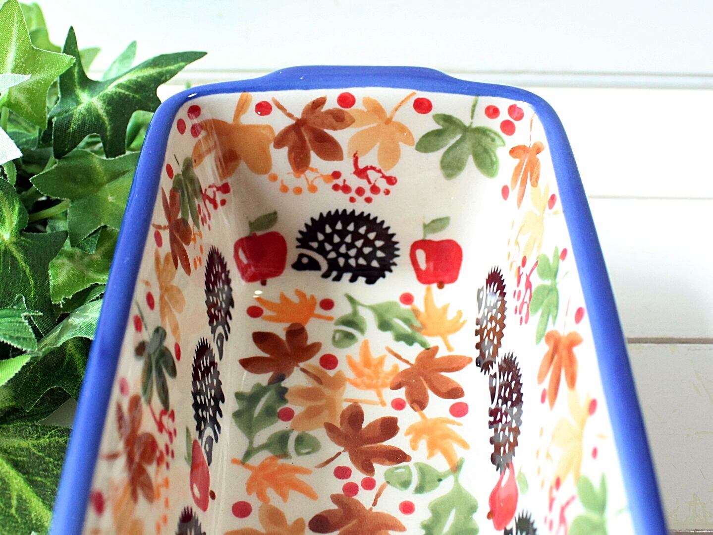 ハリネズミさんとりんごと紅葉の絵付けです。