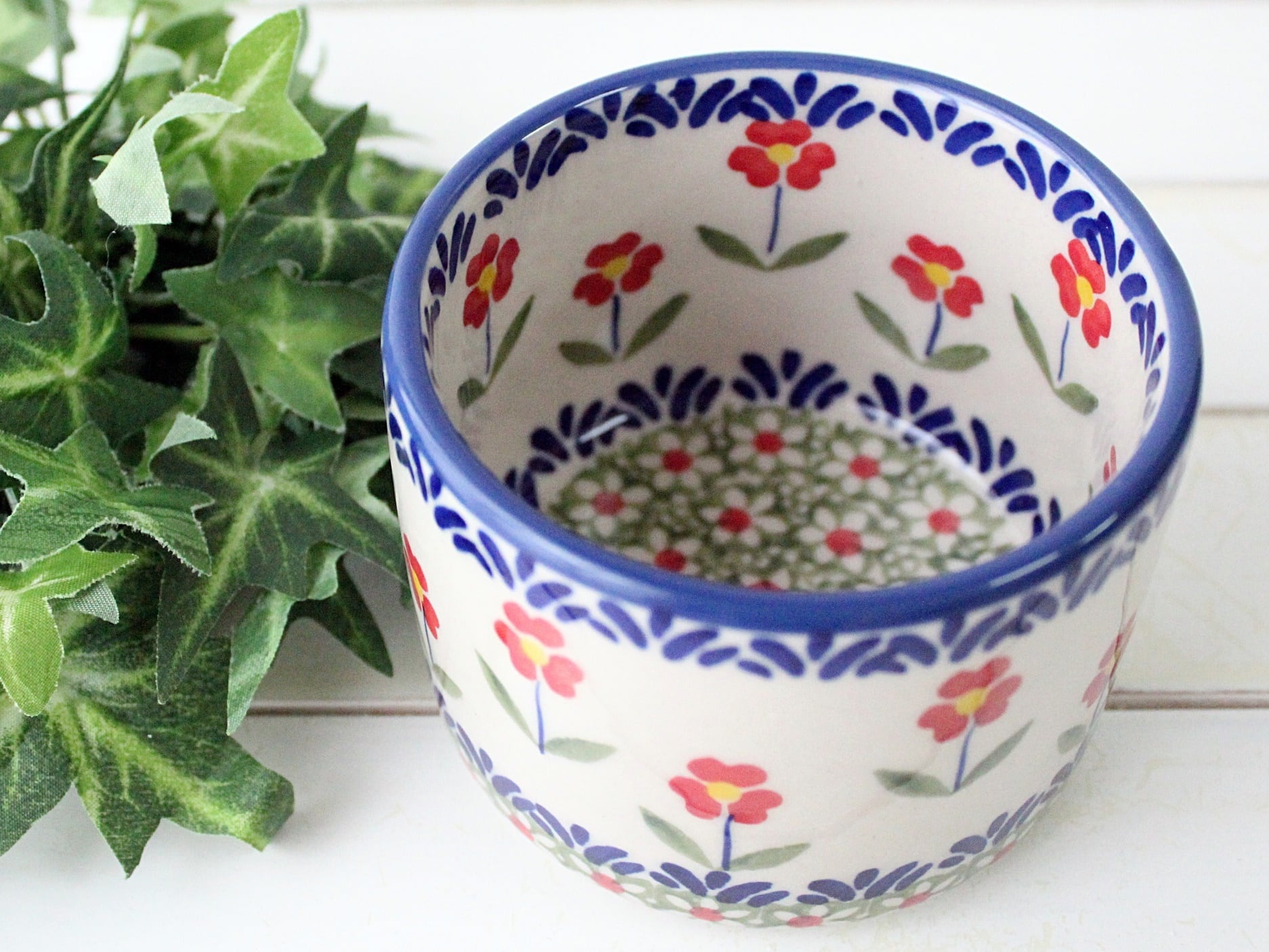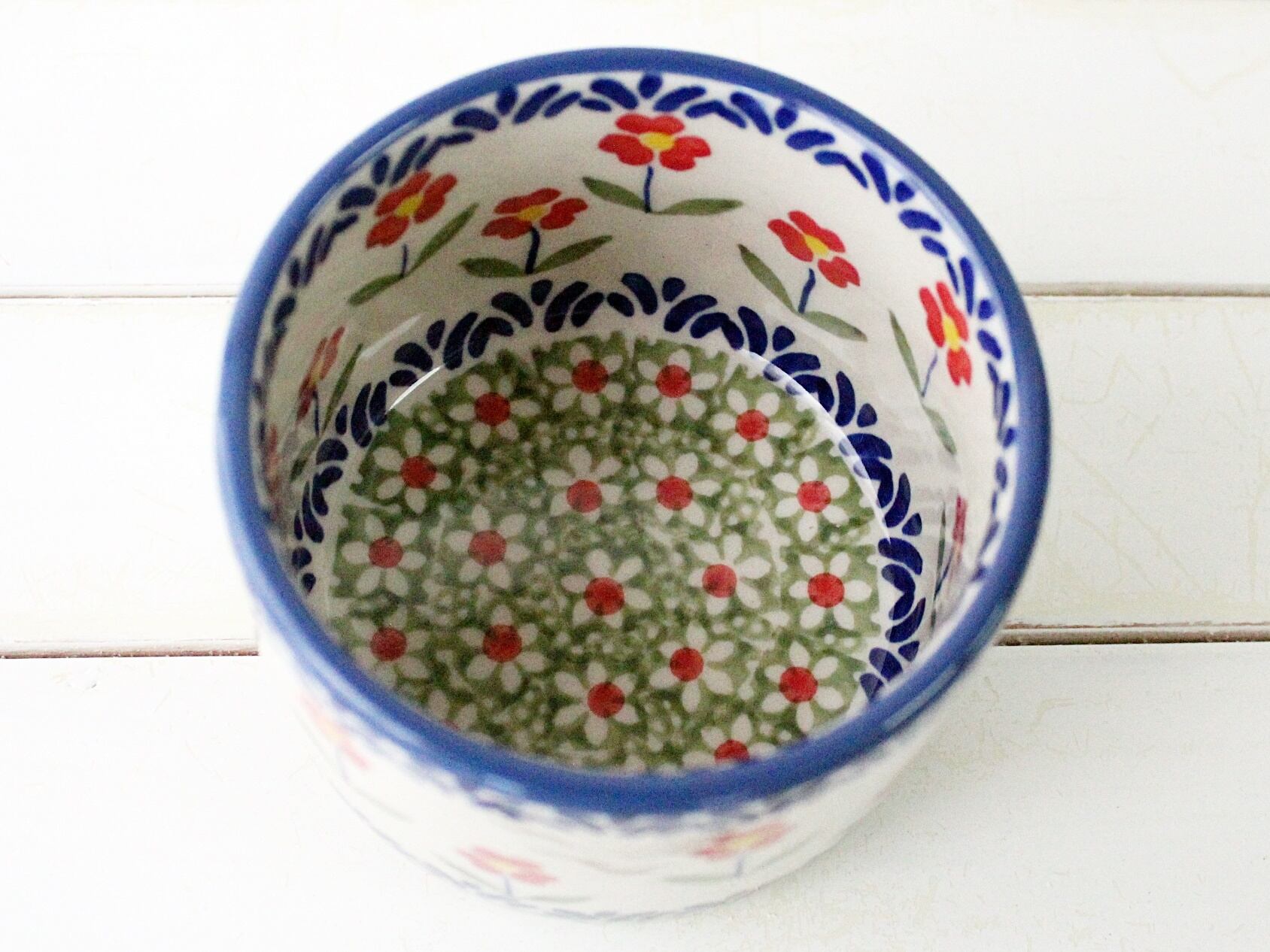 ポーリッシュポタリーの嬉しい所は、内側と外側に絵付けがあることです。