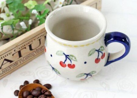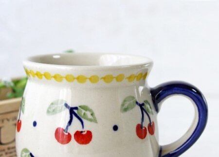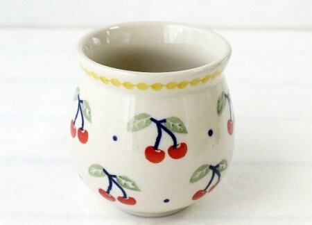 可愛いツインチェリーが走り出しそうな、心躍る楽しい絵付けです。