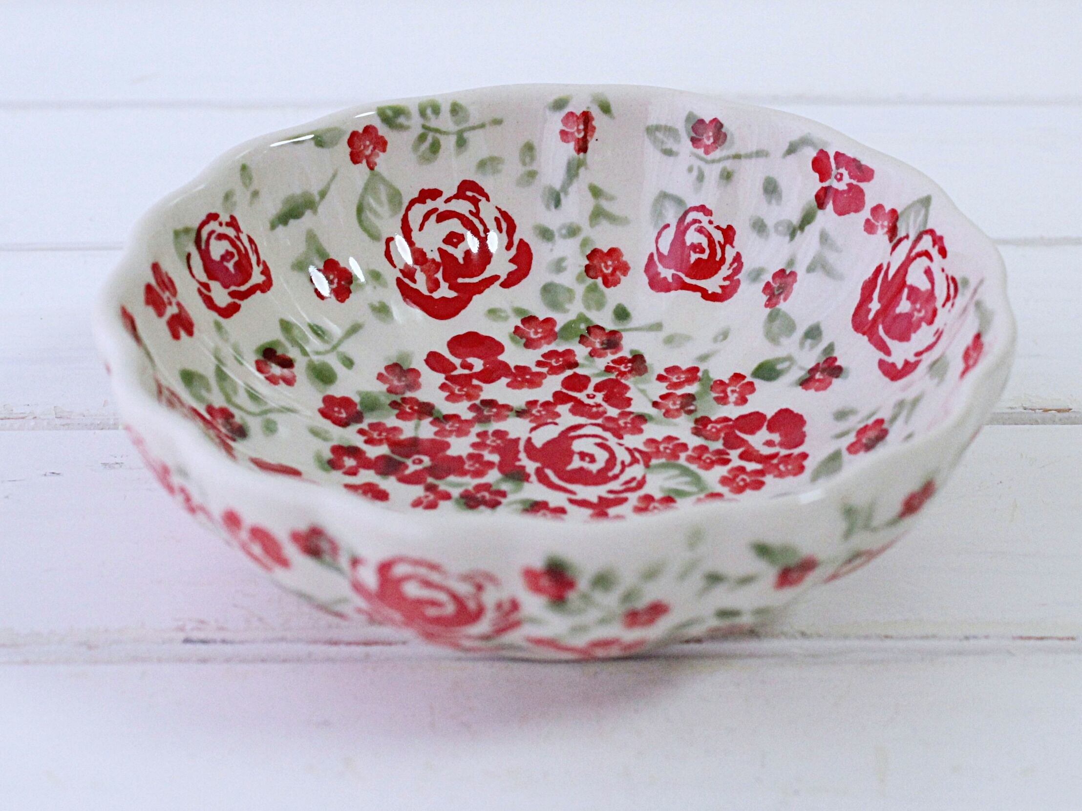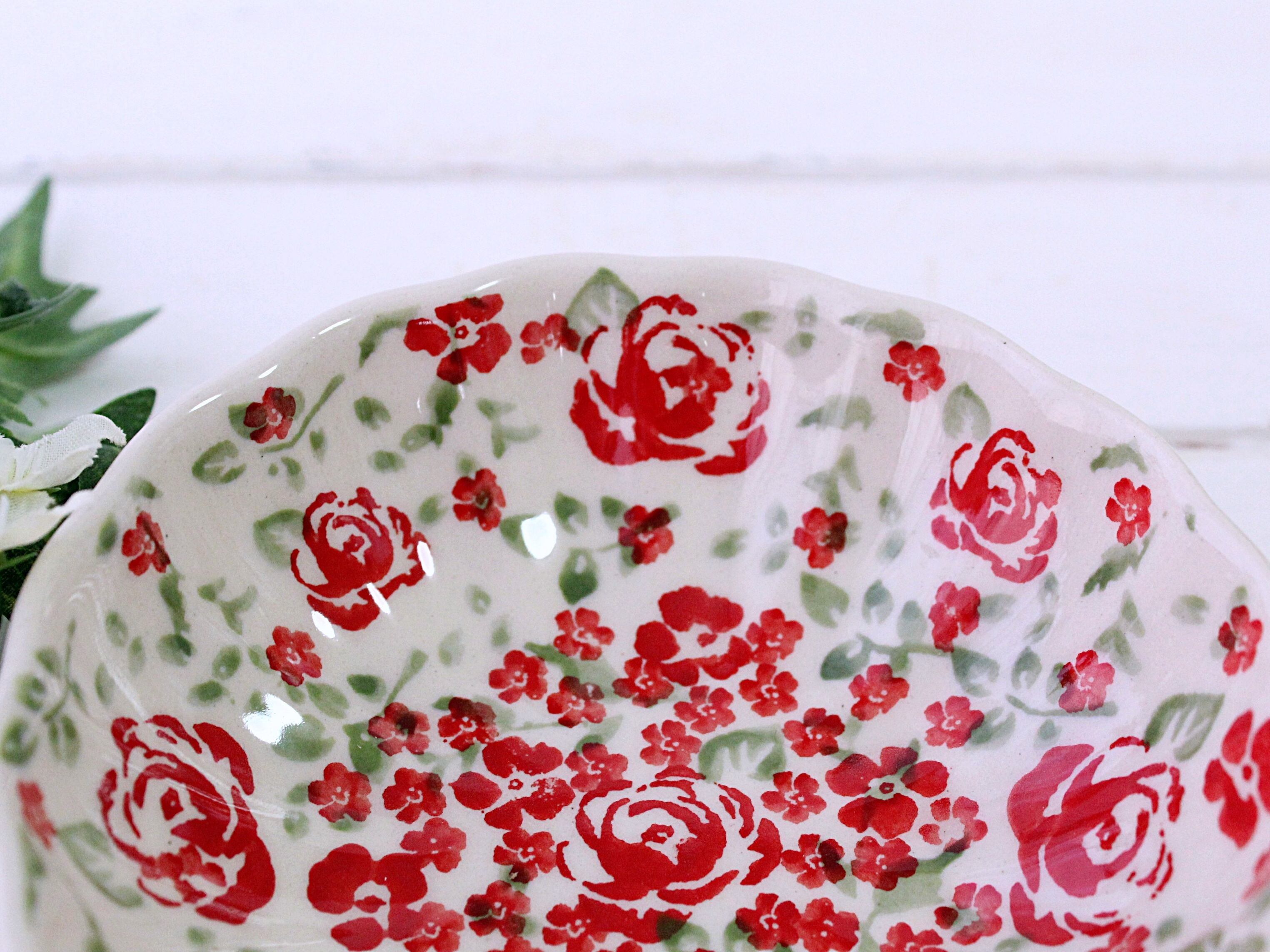 人気のローズコレクションの、優しい黄緑色の葉っぱと、美しい薔薇の絵付けです。