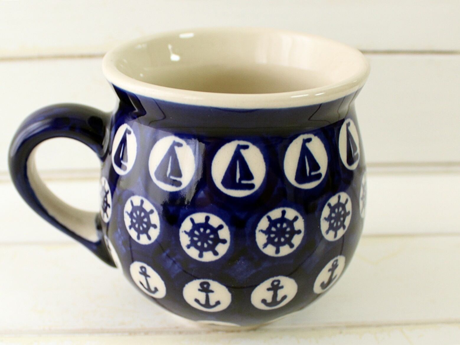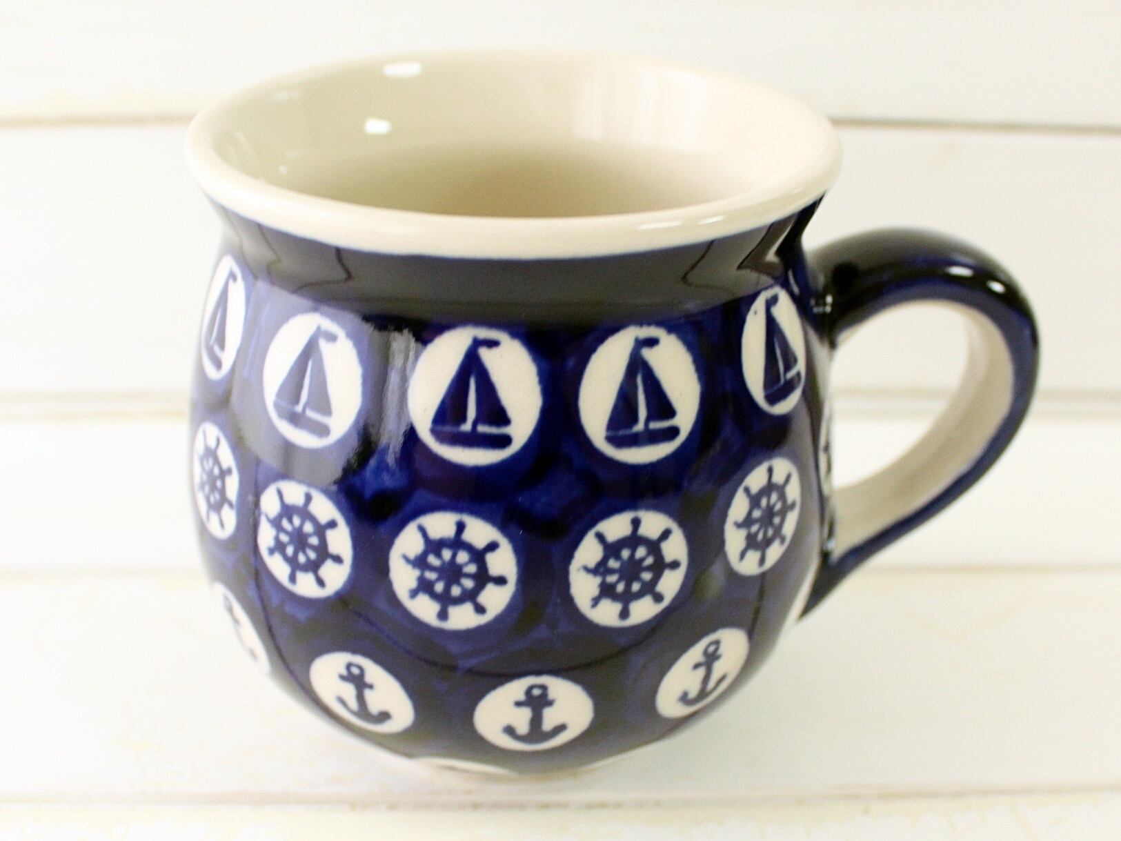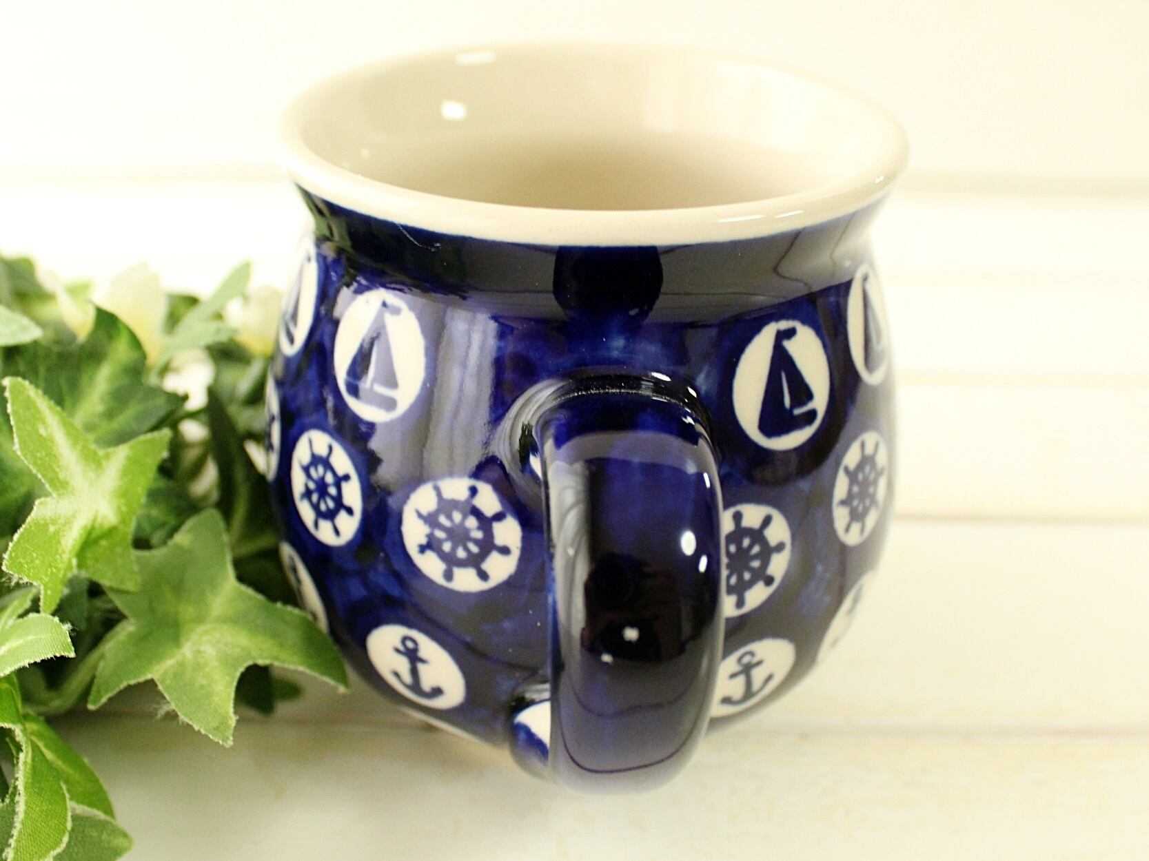 ヨットに舵⚓イルカと、海をイメージさせる絵付けのマグでしょ♪