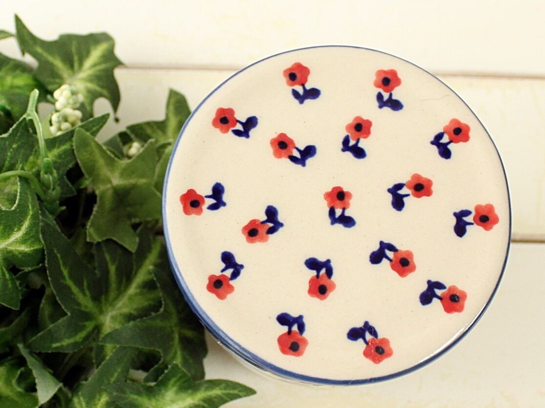 ペアーのアヒルさんと、赤いお花シリーズのふた付きのココットです。