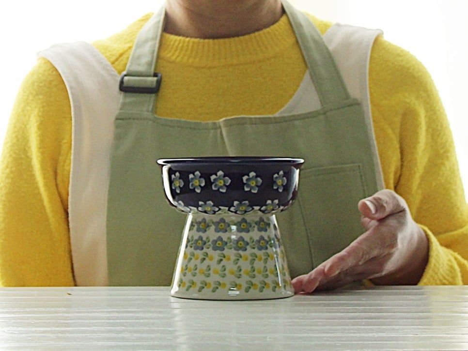 首に負担があるのでは?との考えで出来上がった高台付きのペットボウルです。