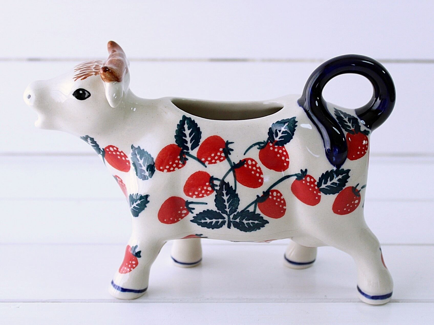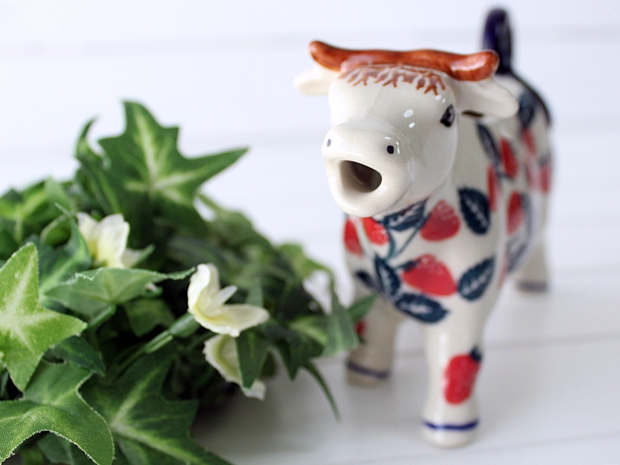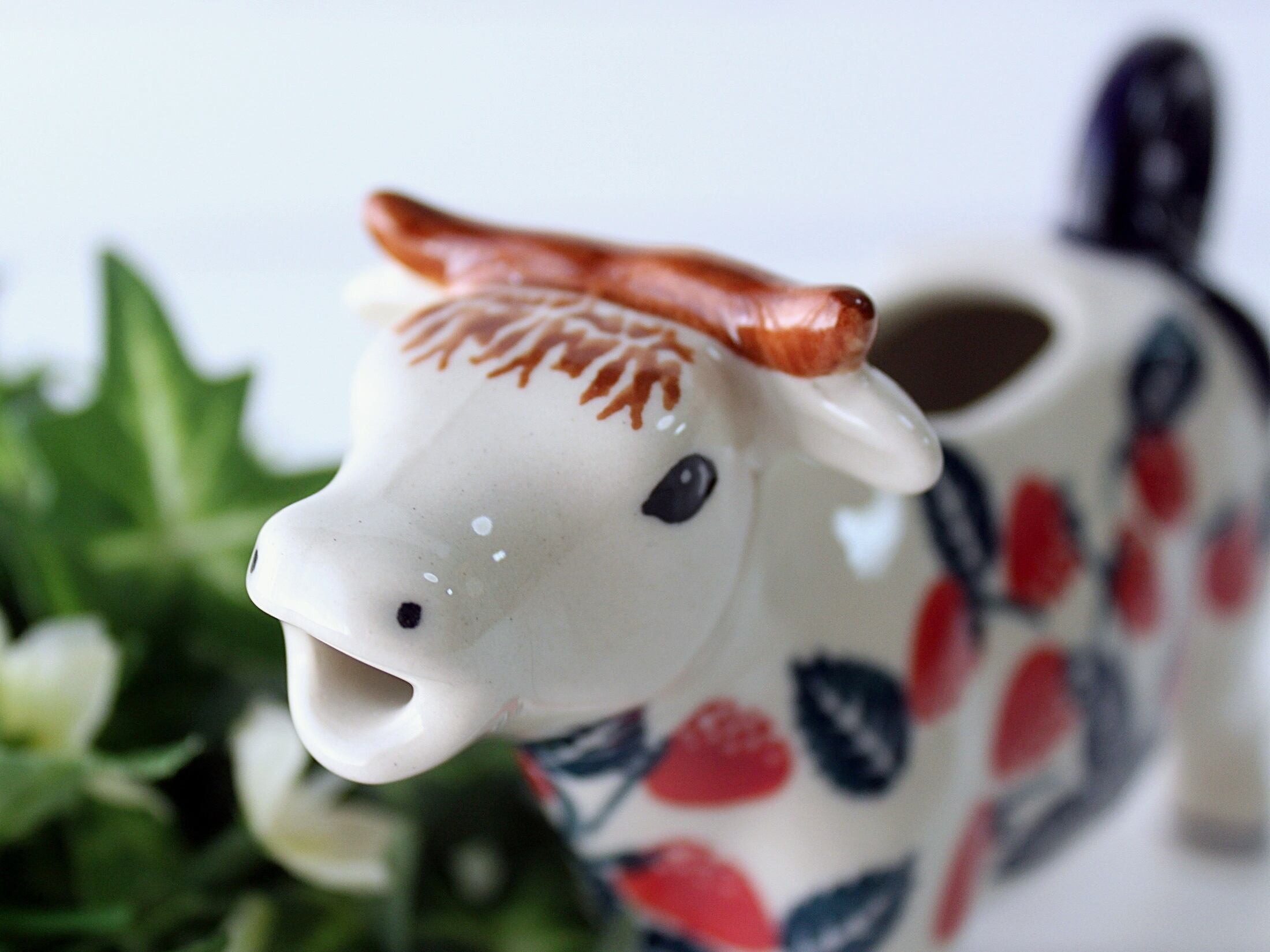 ブラウンのツノに前髪がキュートな牛さんのミルクピッチャーです。