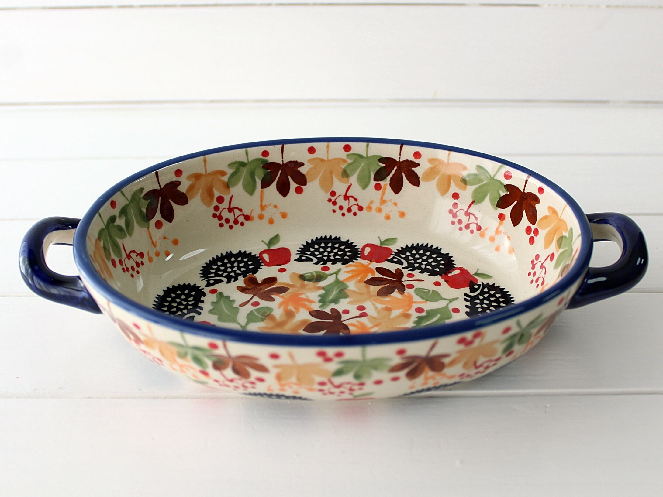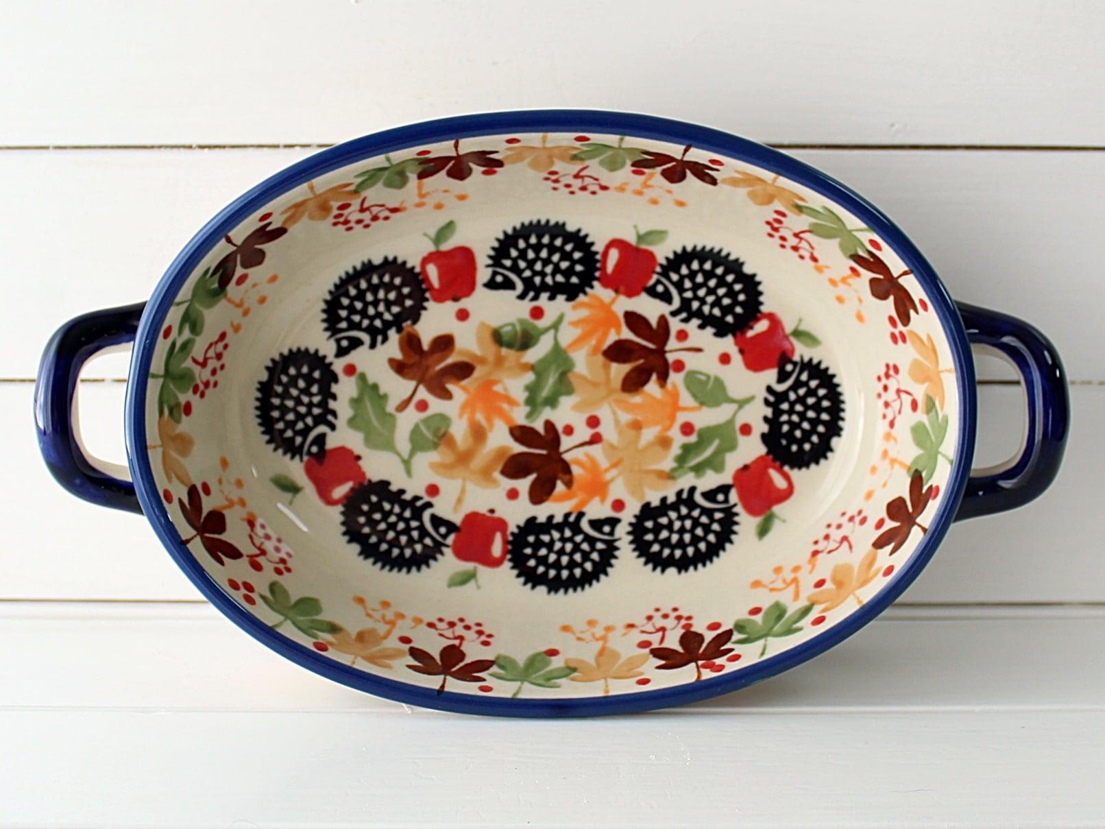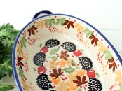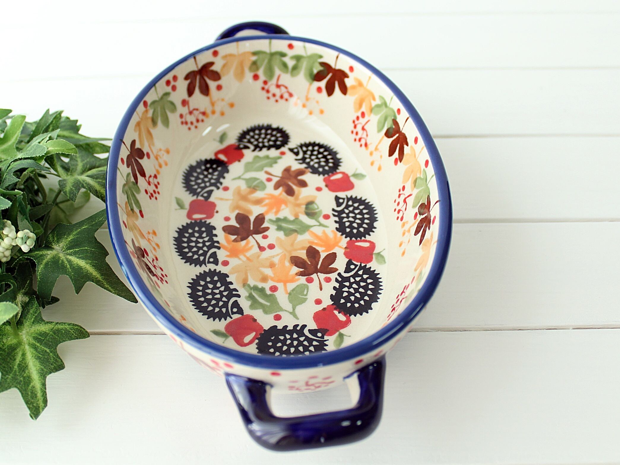 ハリネズミさんと紅葉と林檎シリーズのグラタン皿です。