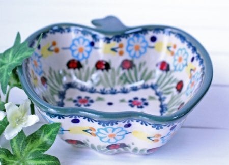 林檎のフォルムのボウルに、サラダやフルーツや煮物等・・・